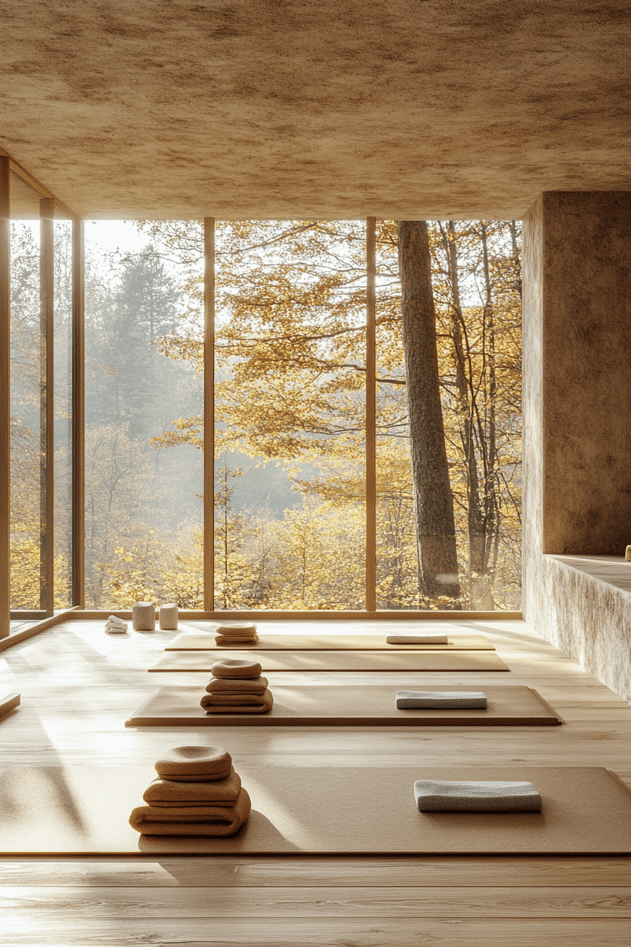 Bright and calming, this yoga studio reflects alpine interior design through its connection to nature and peaceful simplicity. Expansive windows showcase breathtaking forest and mountain scenery that enhances every stretch and breath. Warm wooden floors and soft neutral tones ground the space with natural elegance. Minimal decor keeps the focus on mindfulness, movement, and balance. The atmosphere feels refreshing, restorative, and deeply energizing. Create your own wellness sanctuary with alpine interior design inspiration and begin your calming transformation today.