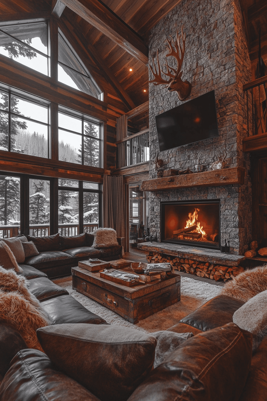 This relaxing lounge showcases alpine interior design through simplicity, comfort, and natural beauty. Clean-lined furniture pairs effortlessly with organic textures to create a calm and uncluttered setting. A dramatic stone fireplace acts as the focal point, adding warmth and visual depth. Large windows frame stunning mountain landscapes and bring the outdoors inside. The space feels both timeless and refreshingly modern thanks to thoughtful alpine interior design choices. Discover more cozy alpine interior design lounge inspiration and refresh your living space today.