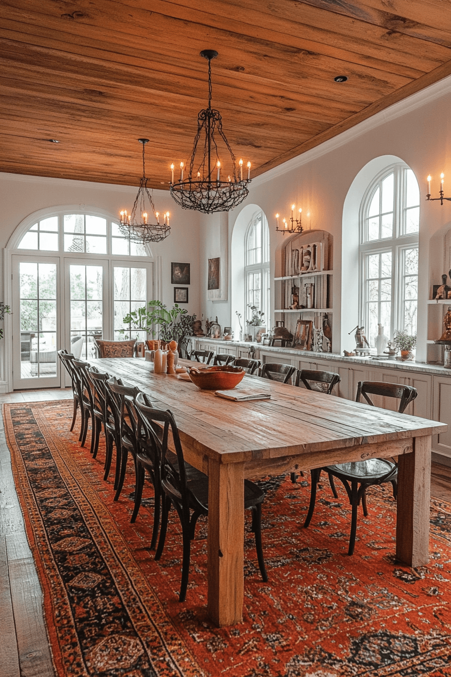 Bright simplicity defines antique dining rooms influenced by Scandinavian minimalism. Light wood finishes and clean-lined furniture open the space with a sense of airy calm. Soft neutral tones create a relaxing environment while still feeling cozy and welcoming. Every piece serves a purpose, blending beauty with everyday functionality. These antique dining rooms feel fresh, balanced, and effortlessly stylish. Transform your dining area with Scandinavian-inspired antique dining rooms and embrace simple living!