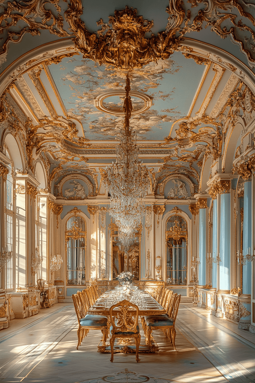 Soft romance and artistic playfulness shine in antique dining rooms inspired by charming Rococo style. Gentle pastel hues and delicate ornamentation bring lighthearted elegance to the space. Gracefully curved furniture silhouettes add movement and visual interest throughout the room. Mirrors and reflective accents scatter soft light for a subtle sparkle. These antique dining rooms feel joyful, intimate, and full of personality. Discover the whimsical charm of Rococo antique dining rooms and let your dining space feel truly enchanting!
