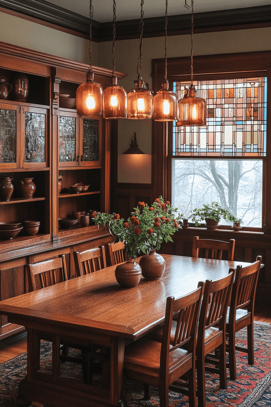 The beauty of handcrafted design shines through antique dining rooms inspired by the Arts and Crafts movement. Solid wood tables and carefully crafted seating introduce warmth and authenticity. Earth-toned palettes and nature-inspired details create a comforting and grounded environment. Every element highlights craftsmanship and thoughtful design choices. These antique dining rooms feel rich with character while remaining practical and inviting. Celebrate artisan beauty by designing your own Arts and Crafts–inspired antique dining rooms today!