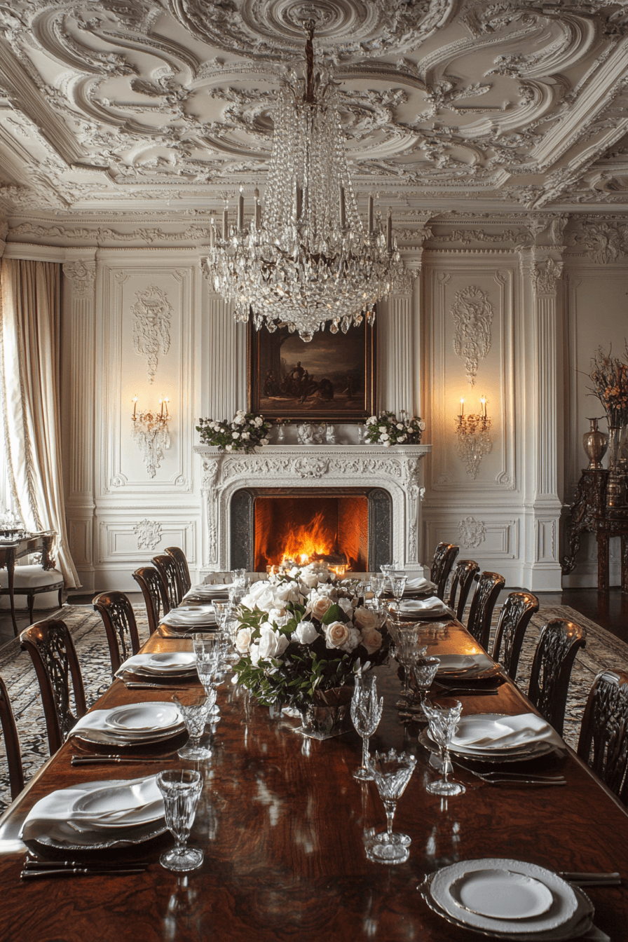 Dazzling luxury defines antique dining rooms inspired by the elegance of the Gilded Age. Ornate furniture and carefully arranged table settings instantly elevate every dining experience. Shimmering metallic accents contrast beautifully with rich fabrics and layered textures. The room radiates a festive yet sophisticated atmosphere ideal for entertaining guests. These antique dining rooms capture timeless glamour and confident style. Bring brilliance to your gatherings with the stunning allure of Gilded Age antique dining rooms!