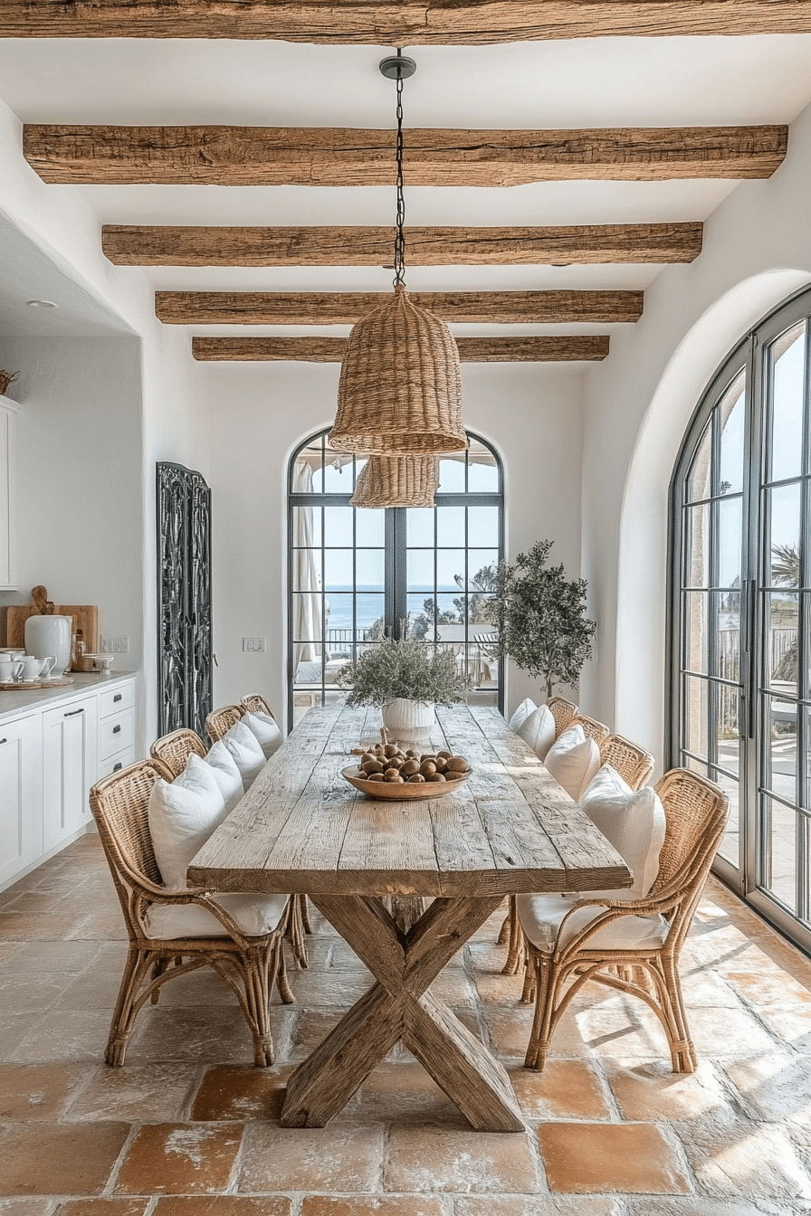 Sunlit elegance and relaxed charm define antique dining rooms influenced by Mediterranean coastal design. Soft finishes and comfortable seating arrangements create an open, breezy feel. Natural textures and seaside-inspired accents bring warmth and visual interest. The overall space feels bright, inviting, and perfect for casual entertaining. These antique dining rooms encourage lively meals and easy conversation with family and friends. Brighten your home with Mediterranean-inspired antique dining rooms and enjoy a fresh coastal vibe!