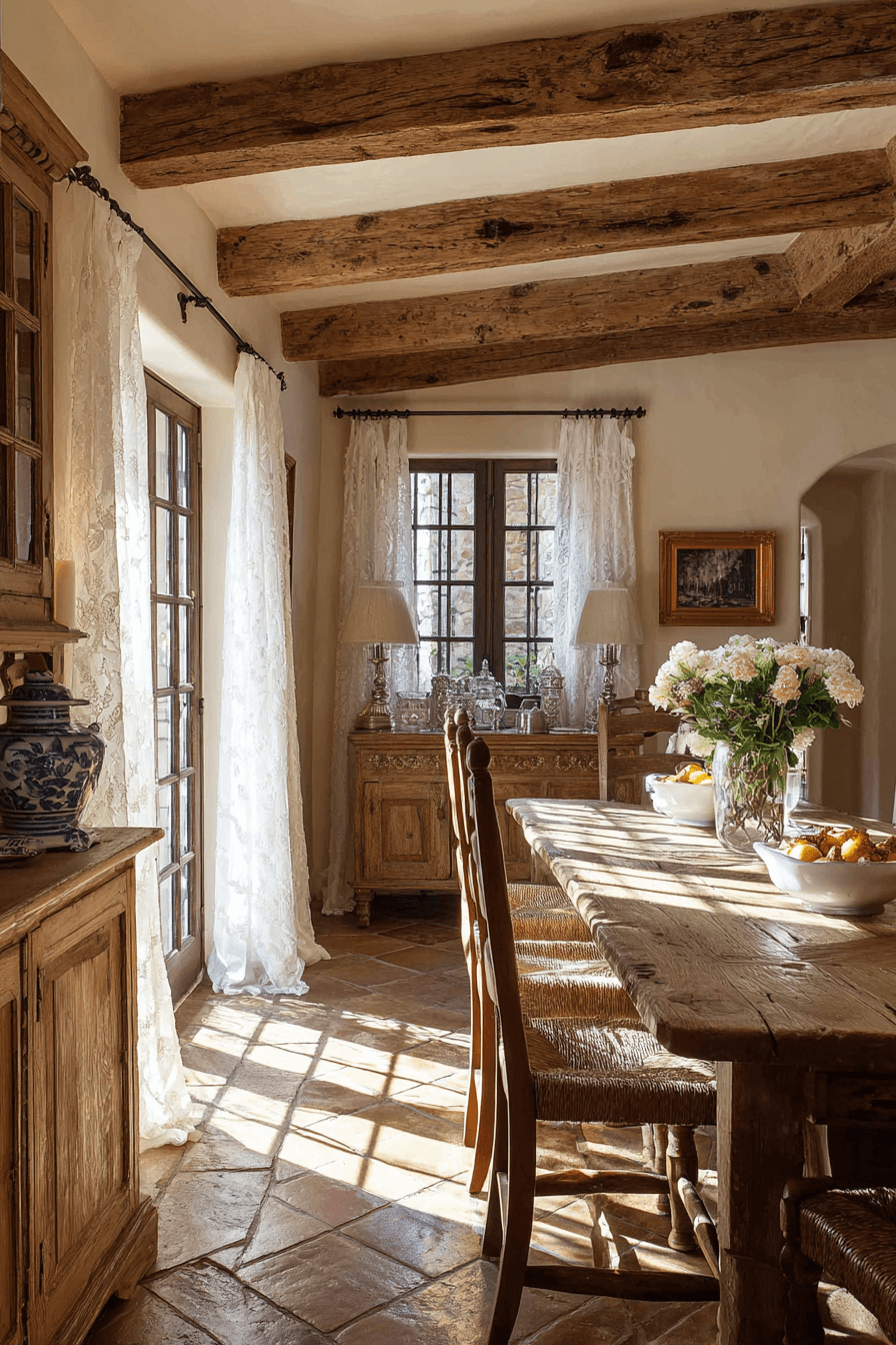 French Provincial style brings a relaxed yet refined beauty to antique dining rooms filled with warmth. Natural wood tables paired with soft patterned fabrics evoke the peaceful charm of the countryside. Decorative lighting and handcrafted details add personality while maintaining a welcoming feel. Thoughtfully arranged table settings make every meal feel special and heartfelt. These antique dining rooms blend casual comfort with understated elegance beautifully. Bring French Provincial charm into your home with antique dining rooms that feel inviting and effortlessly stylish today.