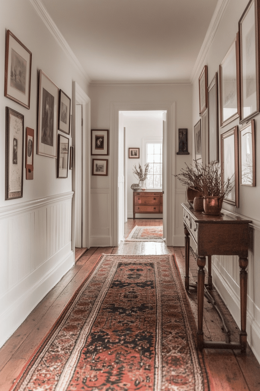 Hallways feel instantly cozier when accented with heritage-style runners that pair beautifully with antique farmhouse decor. Muted colors, vintage-inspired patterns, and traditional weaving add warmth and personality underfoot. These runners protect wooden floors while visually linking one room to the next. Durable materials ensure they hold up well in high-traffic areas while still looking charming. Antique farmhouse decor feels more complete when thoughtful details like these are layered throughout the home. Click to discover antique farmhouse decor runner styles that elevate every hallway!