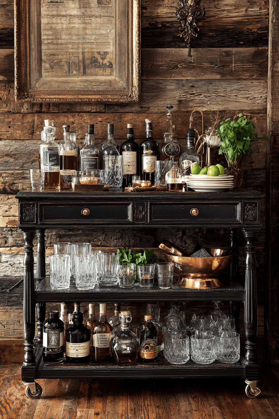 A cozy bar corner feels instantly more welcoming when designed with antique farmhouse decor accents. Weathered bar stools paired with a vintage cart create a relaxed space for entertaining guests. The natural wear on wood and metal adds authenticity that feels charming rather than staged. Whether hosting friends or enjoying a quiet evening drink, the space feels comfortable and inviting. Antique farmhouse decor gives the bar area a sense of tradition and easy hospitality. Click to discover antique farmhouse decor bar setups that make entertaining feel effortless!