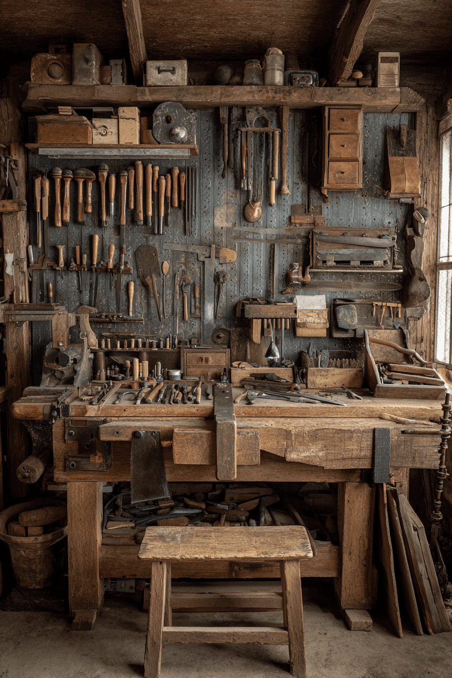 Workshops gain warmth and authenticity when decorated with antique farmhouse decor and historic tools. An old vise, hand-carved plane, or vintage wrench displayed on shelves becomes both decoration and inspiration. These tools reflect generations of craftsmanship and dedication to skilled work. Arranged neatly on pegboards or open shelving, they make the workspace feel meaningful and creative. Antique farmhouse decor turns an ordinary workshop into a place full of history and purpose. Tap to uncover antique farmhouse decor workshop ideas that inspire every project you start!