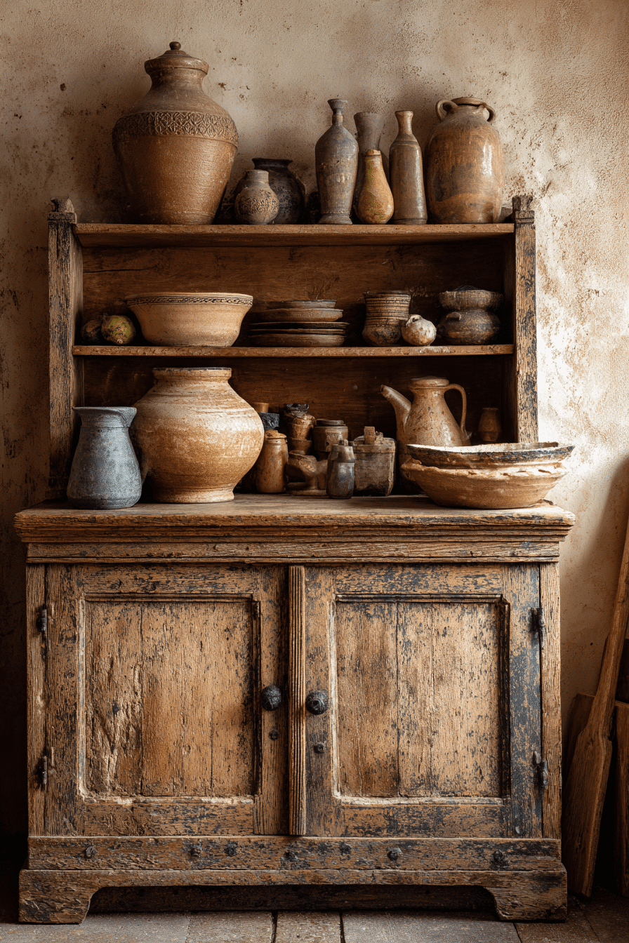 Vintage pantry treasures add instant character and practicality to spaces styled with antique farmhouse decor. A weathered spice cabinet or rustic pantry box introduces handcrafted charm right into the heart of the kitchen. Softly aged finishes and thoughtful details create a nostalgic feeling that instantly warms the space. These beautiful pieces keep everyday ingredients organized while showcasing traditional craftsmanship. Antique farmhouse decor feels especially authentic when functional items also tell a story. Tap to explore how antique farmhouse decor can turn your pantry into a charming focal point!