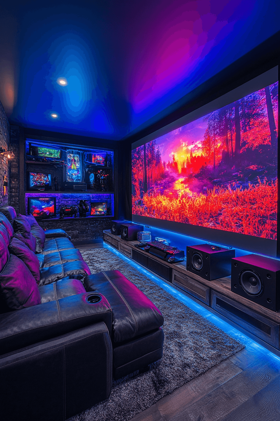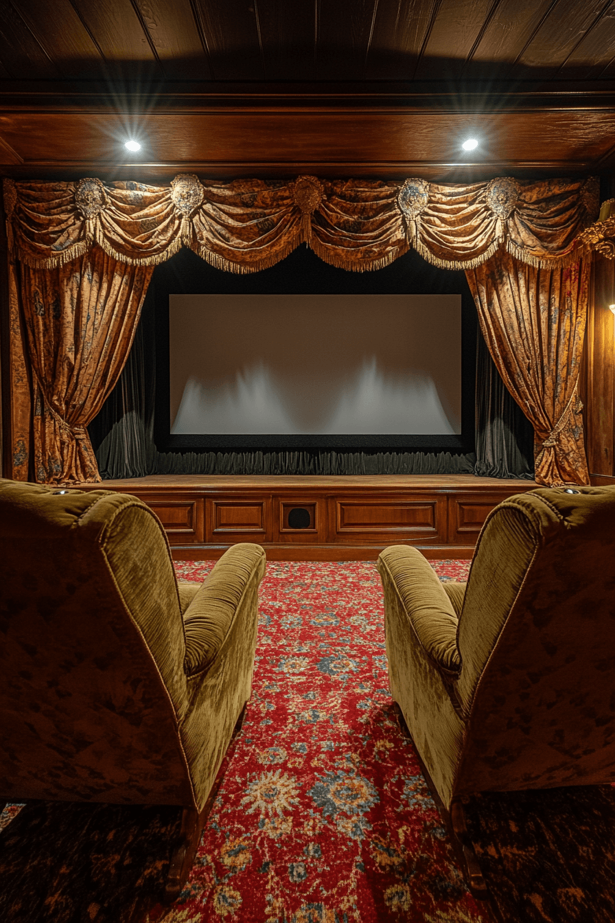 Capture the glamour of classic cinema with basement family room ideas inspired by vintage theaters. Plush velvet seating and dramatic lighting instantly set a sophisticated mood. Elegant accents inspired by old Hollywood bring charm and character to the room. These basement family room ideas transform movie nights into memorable events. The immersive atmosphere delights film lovers of all ages. Tap to uncover more theater-inspired basement family room ideas for unforgettable movie nights.
