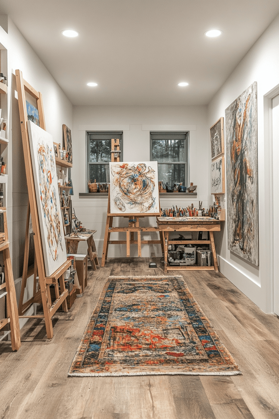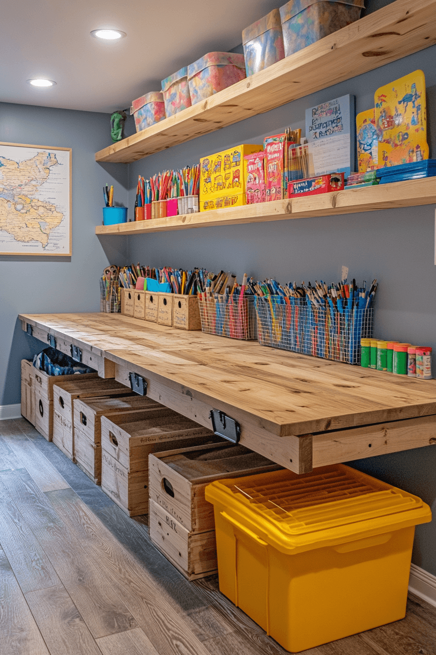 Encourage creativity with basement family room ideas that transform the space into a hands-on workshop. Dedicated craft areas allow family members to sew, paint, build, or work on DIY projects together. Sturdy worktables and organized storage keep supplies neat and easy to reach. These basement family room ideas combine productivity with a welcoming family atmosphere. The basement becomes a place where hobbies grow and imagination thrives. Click to explore more creative basement family room ideas and bring your projects to life.