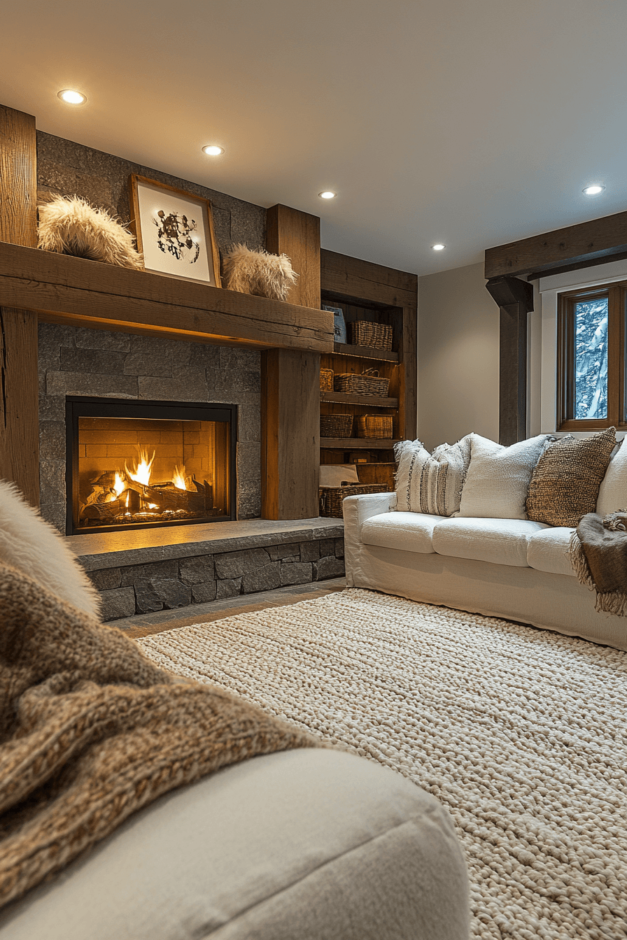 Create a warm and inviting retreat downstairs with basement family room ideas designed around comfort and connection. Soft sofas, cozy throws, and gentle lighting instantly make the space feel relaxing. Neutral tones keep the room calm while textured accents add visual interest. A small fireplace or warm lamp glow enhances the atmosphere for long evenings together. These basement family room ideas help transform the lower level into a place where everyone can unwind. Tap to explore more cozy basement family room ideas and start shaping your perfect retreat.