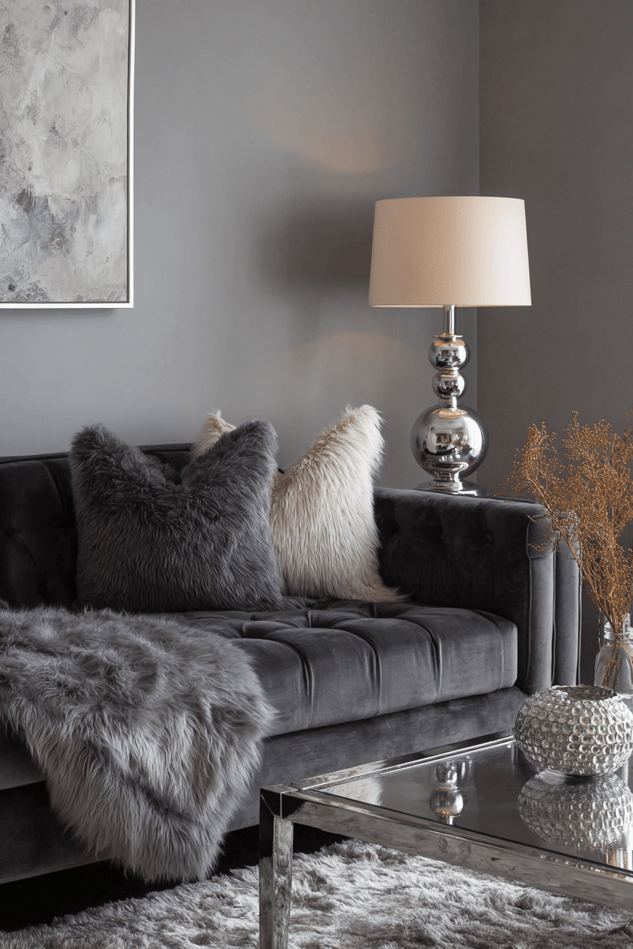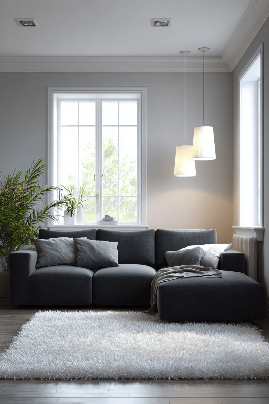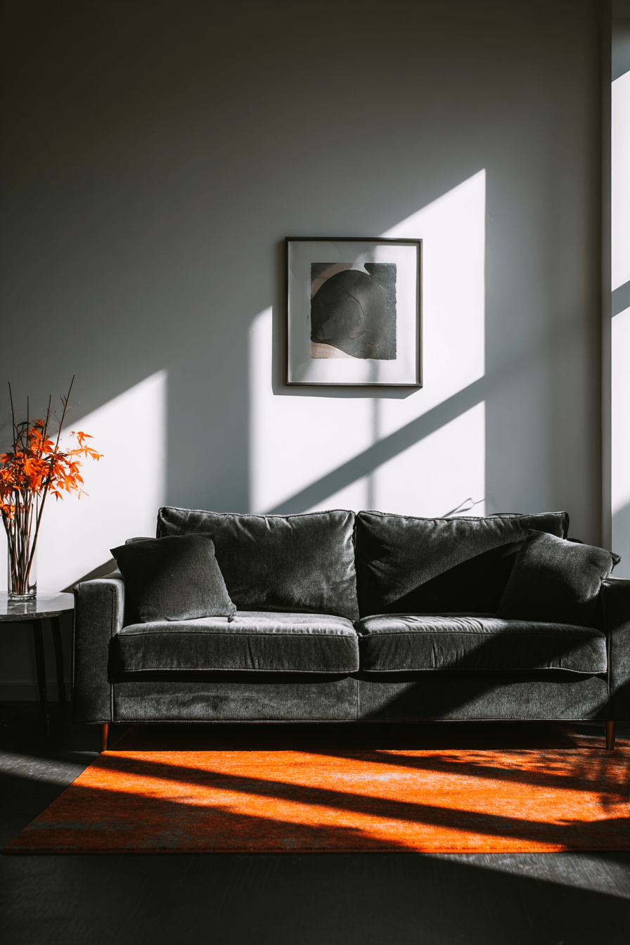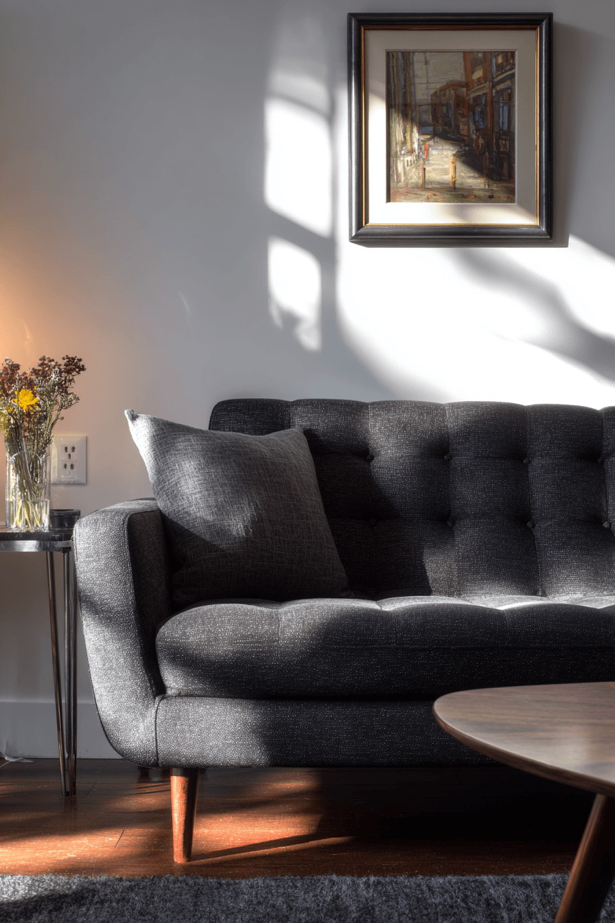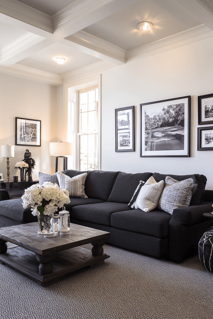 10. Chic Charcoal Couch Contrast