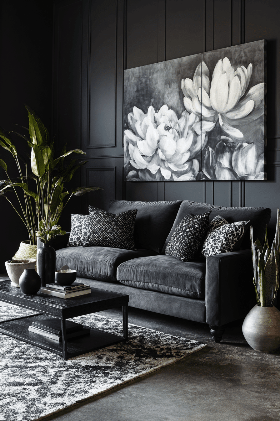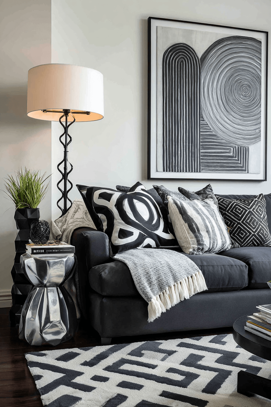 4. Monochrome Charcoal Living Chic