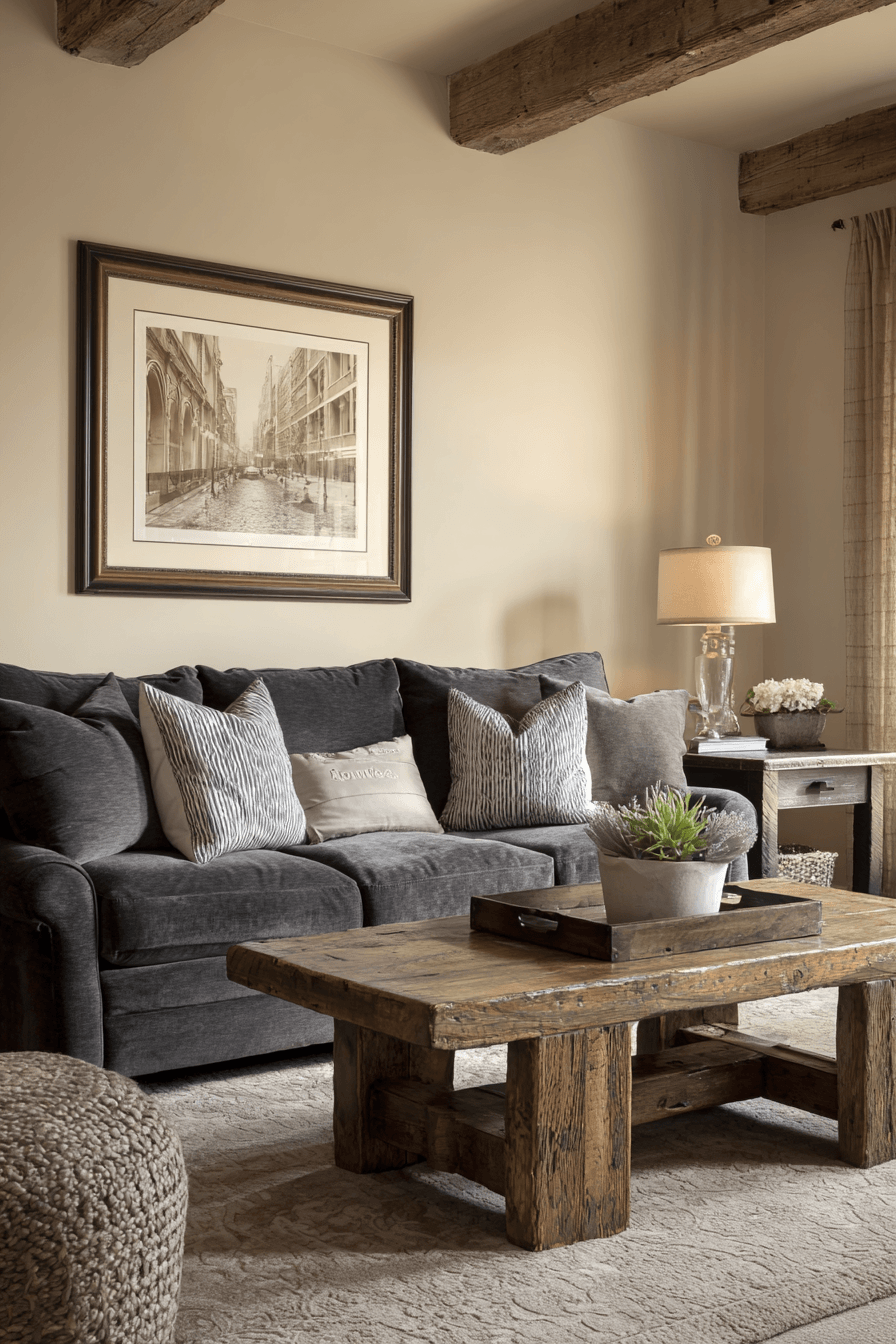 Natural warmth blends beautifully with modern design in a charcoal couch living room that embraces rustic touches. The deep gray sofa pairs effortlessly with warm wood surfaces, earthy tones, and handcrafted accents. Textures like woven fabrics, cozy throws, and ceramic decor add personality and comfort. This combination creates a space that feels both stylish and welcoming. The charcoal couch living room becomes the perfect place to relax while still showcasing thoughtful design. Explore fresh ways to mix rustic charm with modern style in your living room.