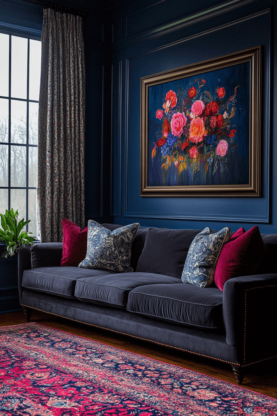 Rich color creates unforgettable drama in a charcoal couch living room filled with deep, luxurious tones. Walls painted in shades like navy, forest green, or plum intensify the bold presence of the charcoal sofa. Velvet pillows, textured fabrics, and elegant finishes add layers of visual depth and sophistication. Carefully chosen lighting introduces a moody glow that enhances the dramatic atmosphere. The charcoal couch living room becomes a striking centerpiece for stylish entertaining. Discover bold color ideas that can transform your living room into a stunning retreat.