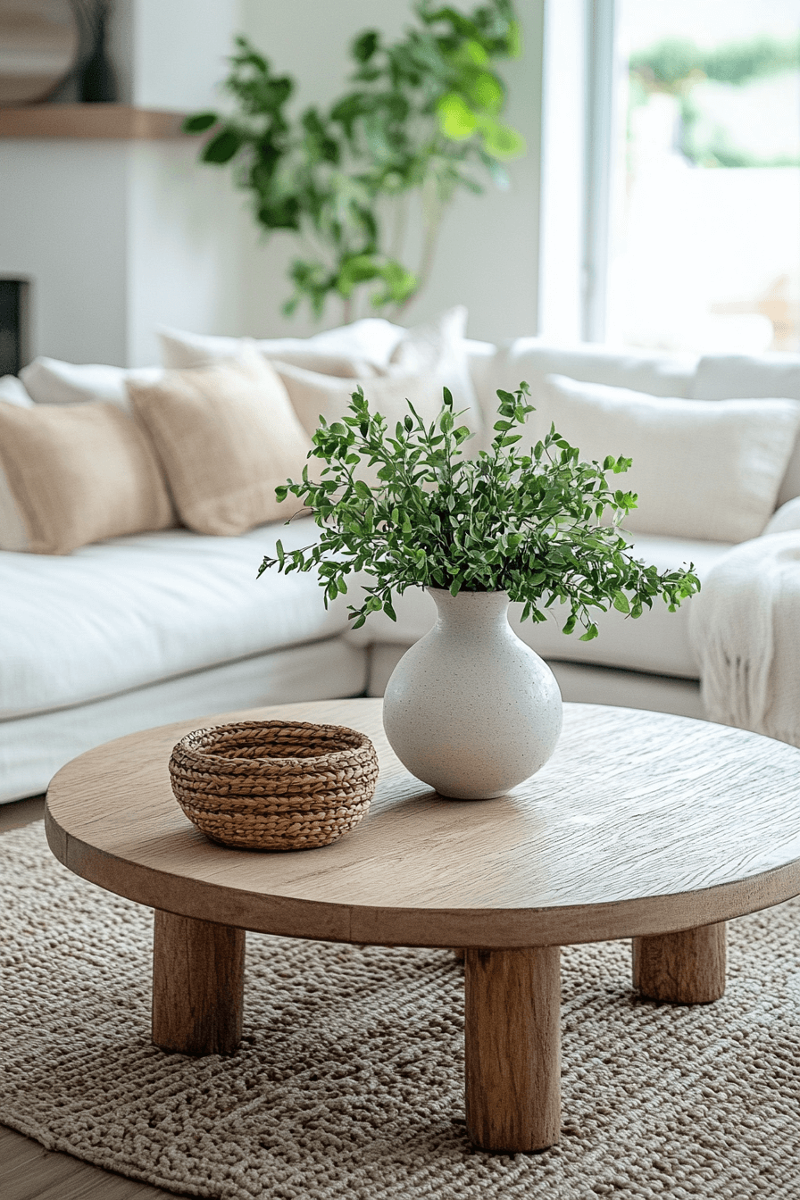 Maximize impact in small spaces with coffee table decor ideas focused on scale and function. Use nesting trays, compact plants, and decor that doubles as storage. Light colors and clean lines keep things feeling open. This style proves that less really is more. Ideal for apartments or cozy nooks.