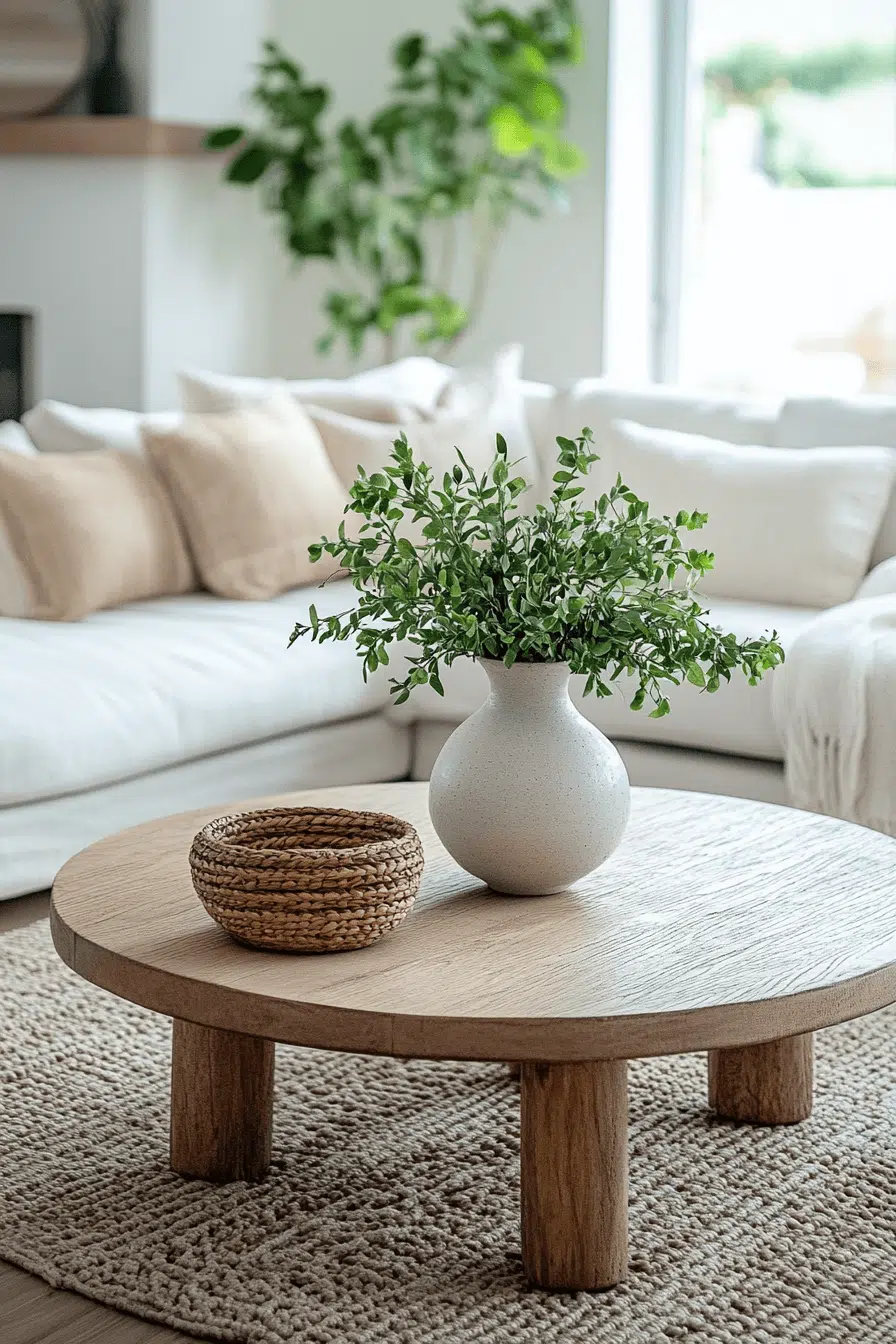 Bring nature indoors with organic coffee table decor ideas featuring plants, wood, and stone. A driftwood sculpture or succulent terrarium adds life and texture to your table. Earthy palettes and imperfect shapes give the space a grounding feel. It’s serene and effortlessly beautiful. Perfect for connecting with nature in a modern space.