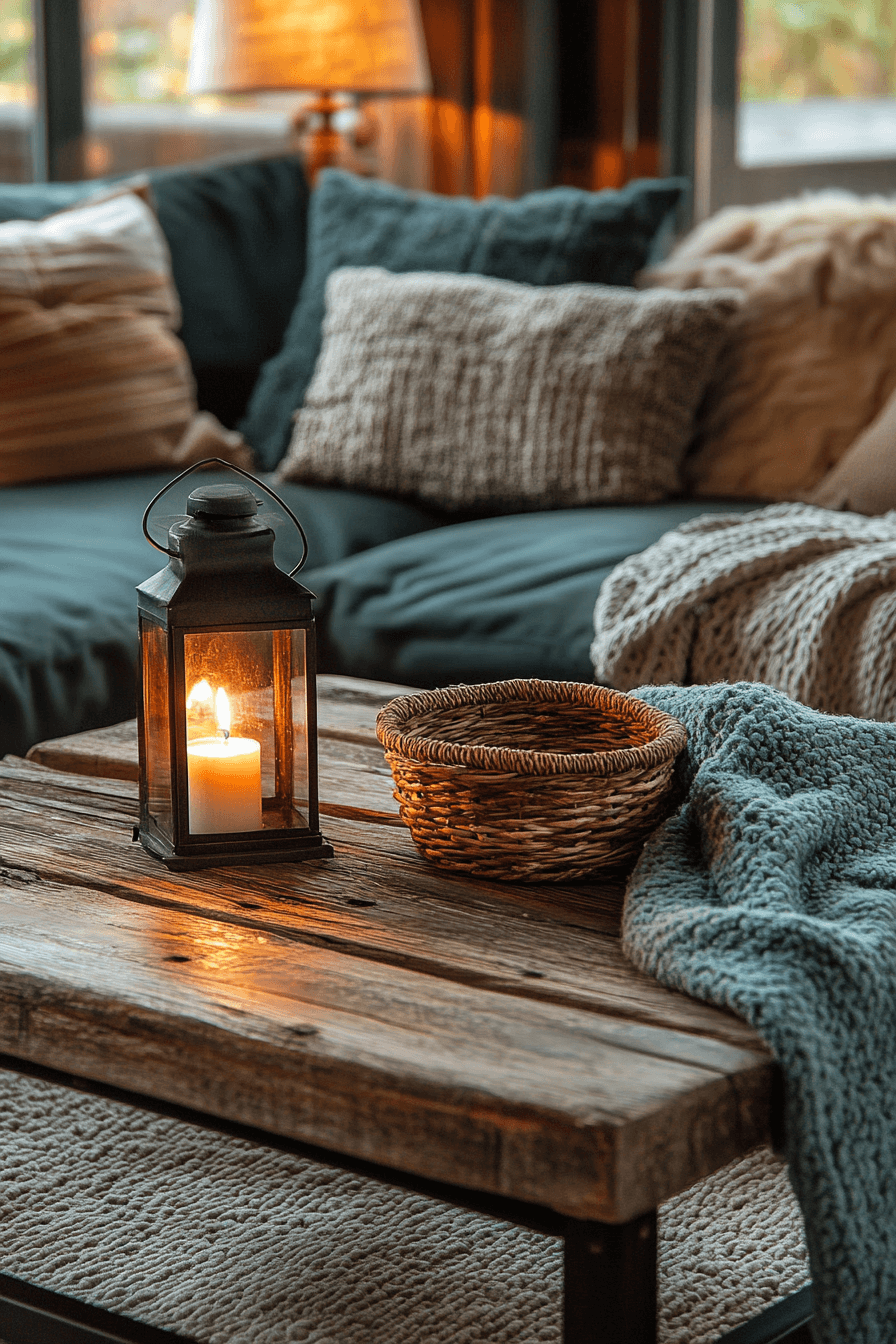 Set the mood with romantic coffee table decor ideas using flickering candles, soft textures, and cozy accents. Cluster pillar candles in varying heights on a mirrored tray for elegance. Add a few rose petals or a love note tucked into a book for personal flair. This look is ideal for date nights or relaxing evenings at home. Warmth, comfort, and charm—right on your coffee table.