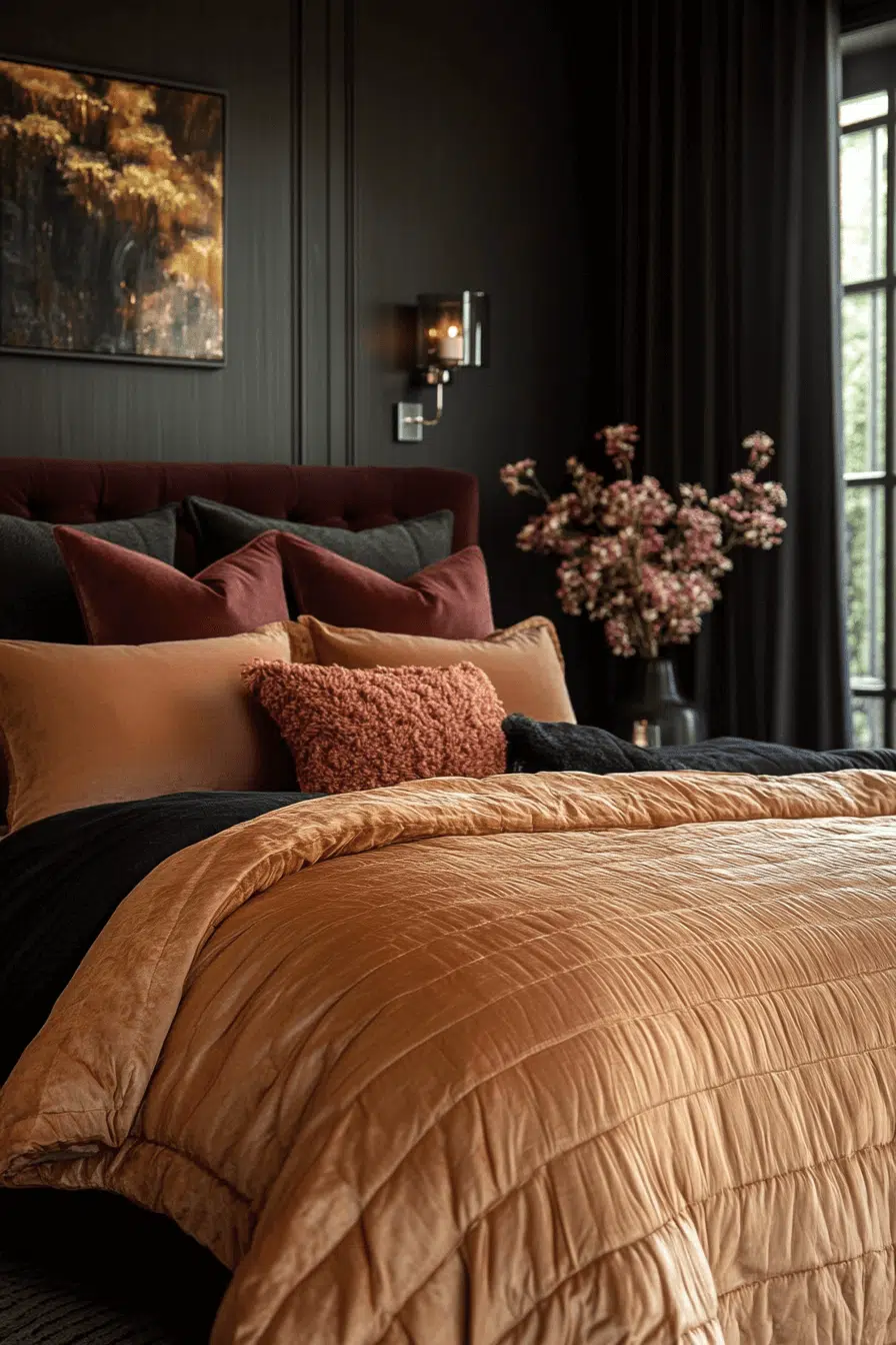 Drift into luxury with silky smooth bedding, a dreamy touch of elegant bedroom decor. Affordable silk pillowcases or a thrifted silk throw add a glossy, cozy vibe without the high cost. This simple swap cools you down and makes your bed feel like a royal retreat.