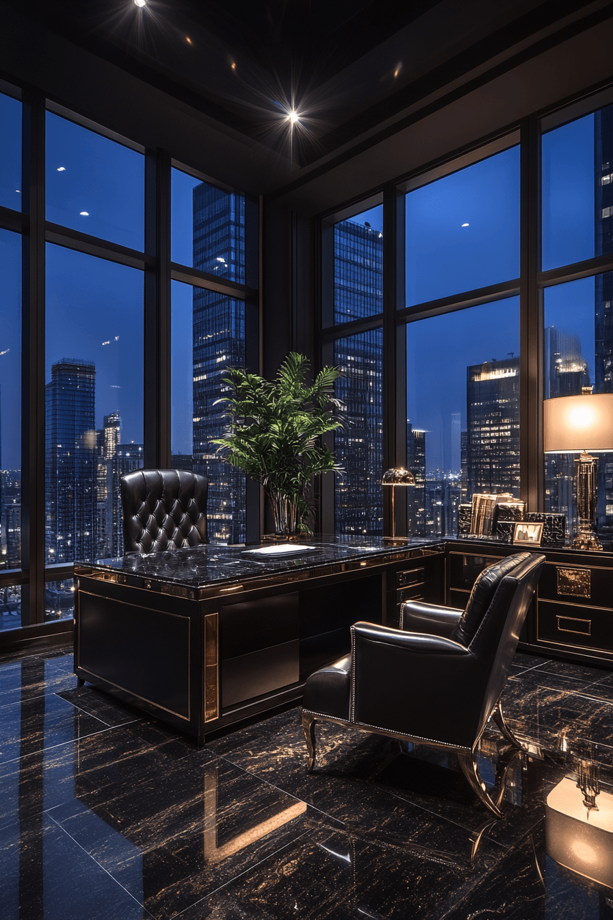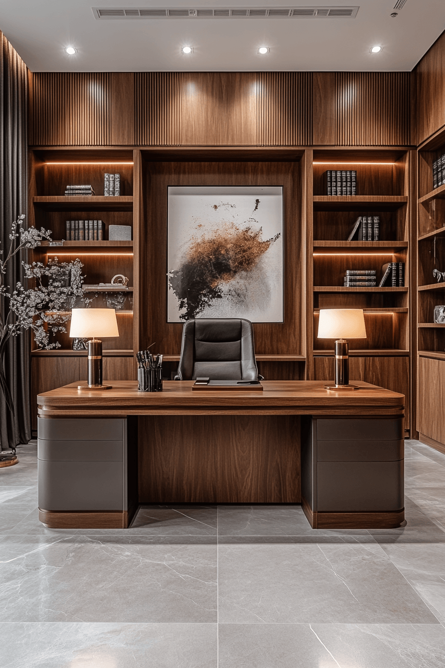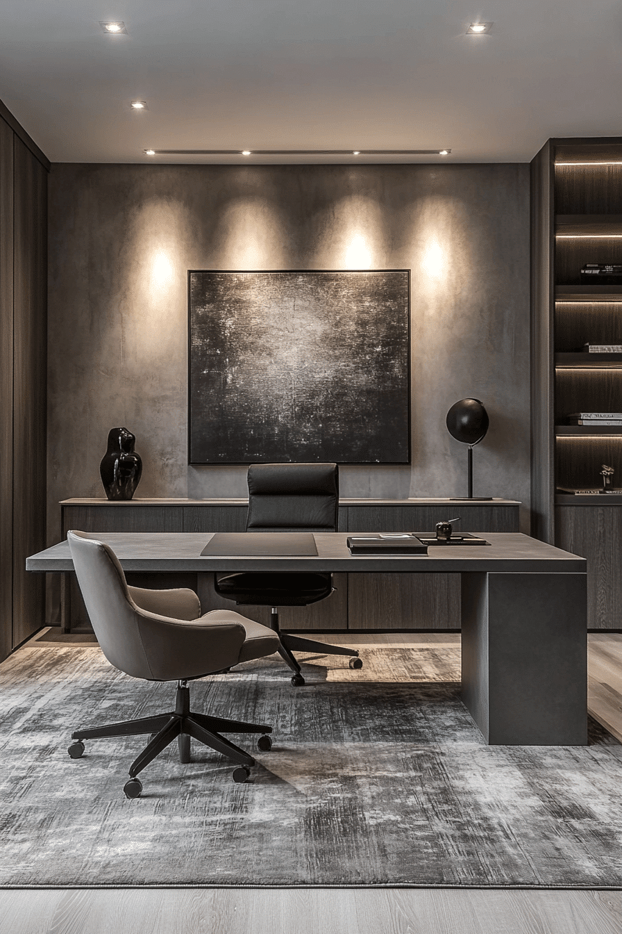 Transform your elegant home office into a space that feels powerful and refined with a bold, modern setup. Sleek materials like metal finishes and smooth leather instantly elevate the overall look. Deep, muted tones create a confident atmosphere while keeping everything visually grounded. A spacious desk paired with a supportive executive chair anchors the room with purpose. Clean storage and minimal decor help maintain a sharp, professional feel. Tap to explore more executive-inspired office ideas that reflect confidence and success.