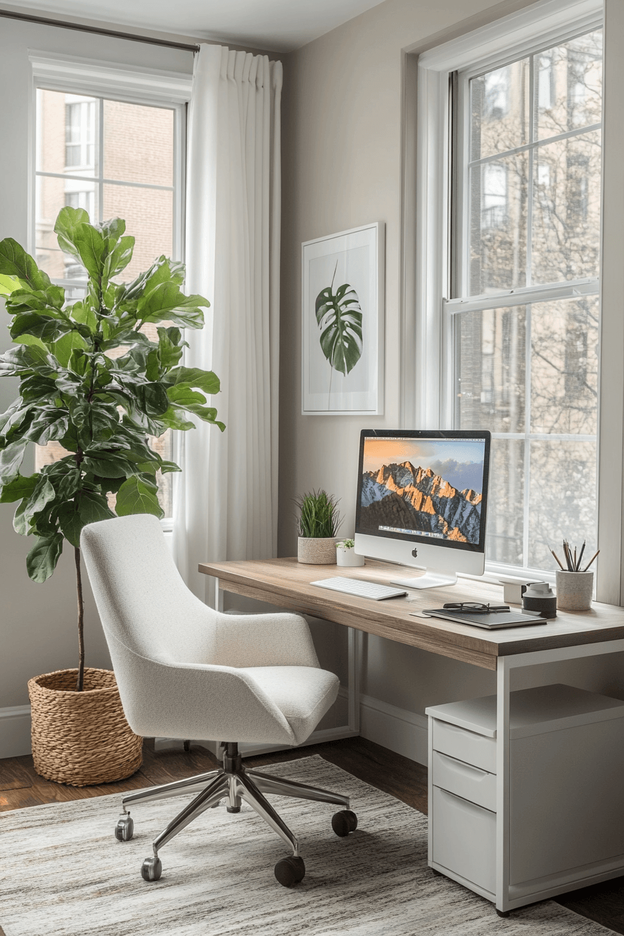 A simple, uncluttered approach can turn your elegant home office into a peaceful retreat for focused work. Light surfaces and minimal furnishings create an open, airy atmosphere that feels refreshing. A clean desk setup paired with a comfortable chair keeps everything practical and easy to use. Soft, calming details help reduce distractions and promote clarity throughout the day. The overall look feels serene, balanced, and effortlessly stylish. Click to explore more minimalist office ideas that bring calm into your routine.