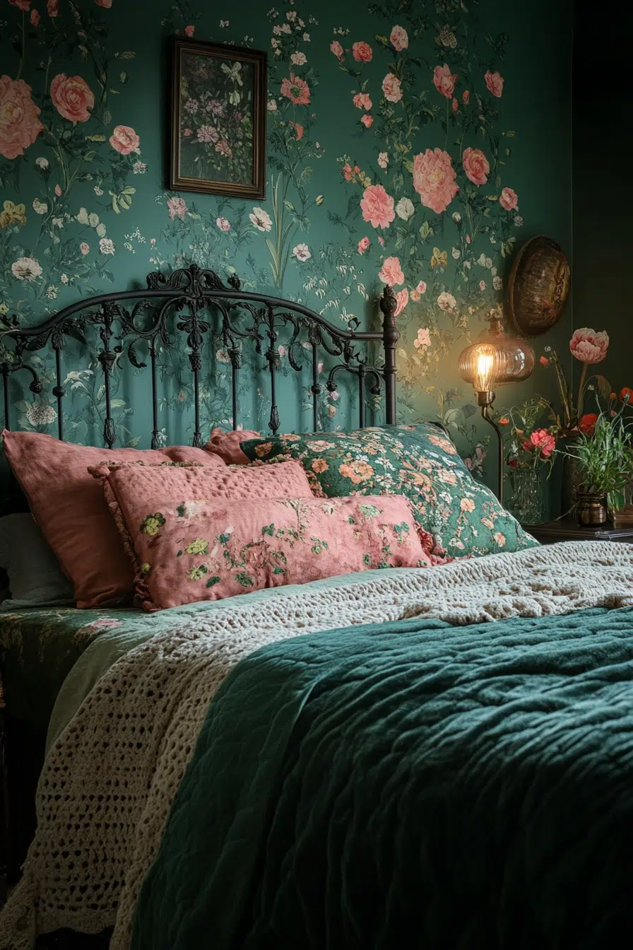 Turn your bedroom into a serene garden at dusk with rich earth tones and botanical wallpapers. This theme brings the calm of nature right into your room. It’s an ideal escape for those seeking tranquility.