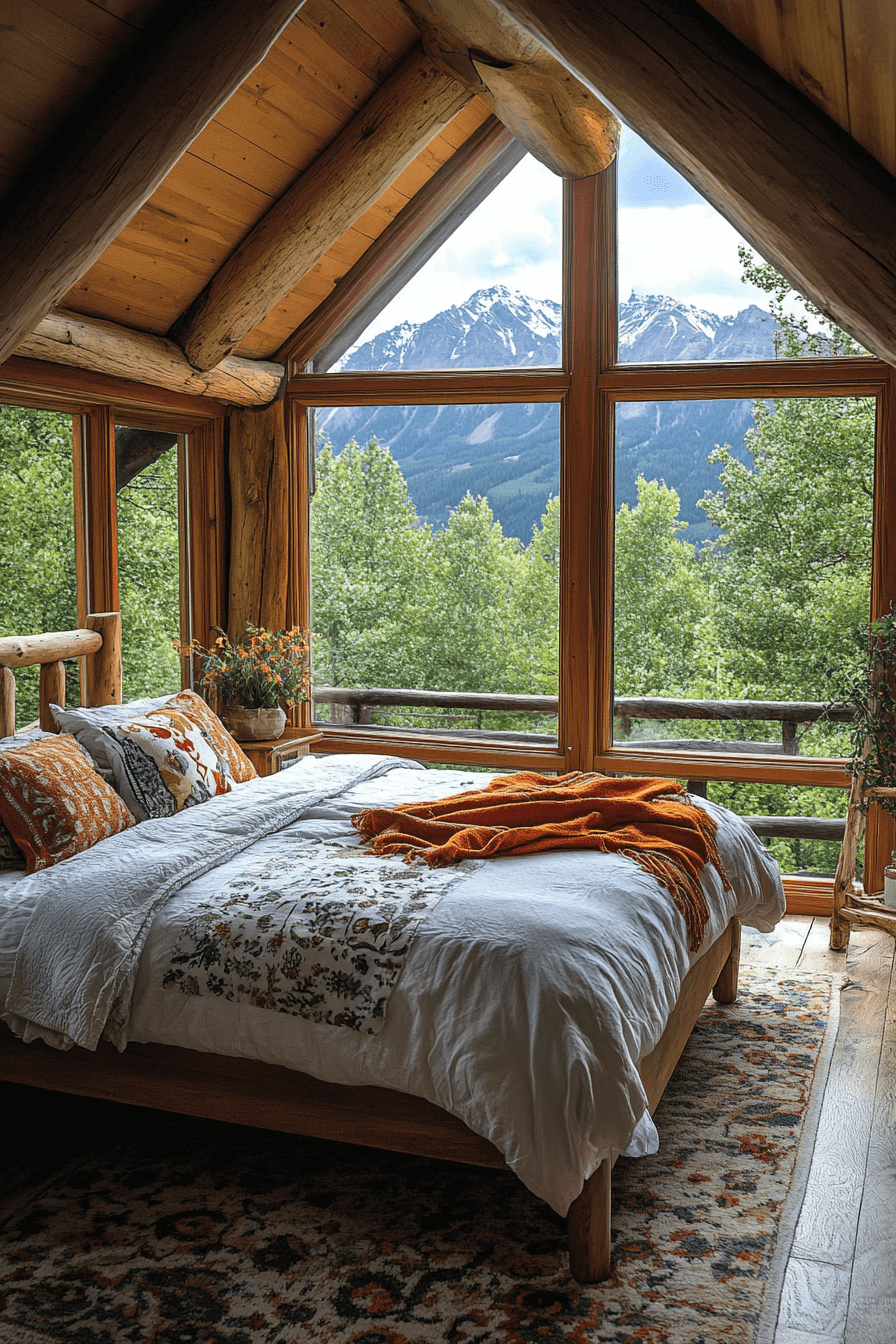 Bring mountain magic indoors with cozy, nature-loving guest room ideas inspired by the peaks. Stone accents, wooden beams, and warm textures make it a true alpine escape. Oversized windows frame breathtaking views. It’s rustic yet refined.