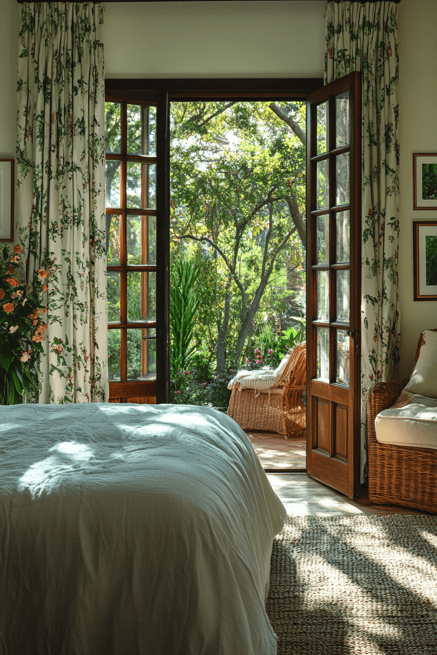 Let nature take center stage with garden-view guest room ideas that bloom with beauty. Gentle florals, natural textures, and earthy tones blend perfectly with lush outdoor views. A reading nook near the window invites quiet moments surrounded by greenery. The vibe is soothing, organic, and alive.