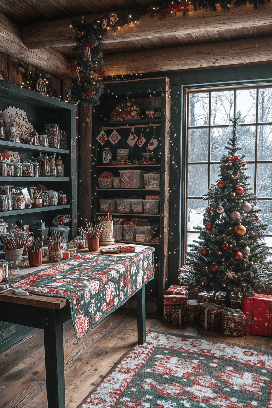 Get creative in a Christmas workshop that embodies your little cabin Christmas spirit. A festive workspace with garlands, craft supplies, and bright lighting invites endless fun. Handmade ornaments and laughter fill the air. Every project feels personal and full of heart.