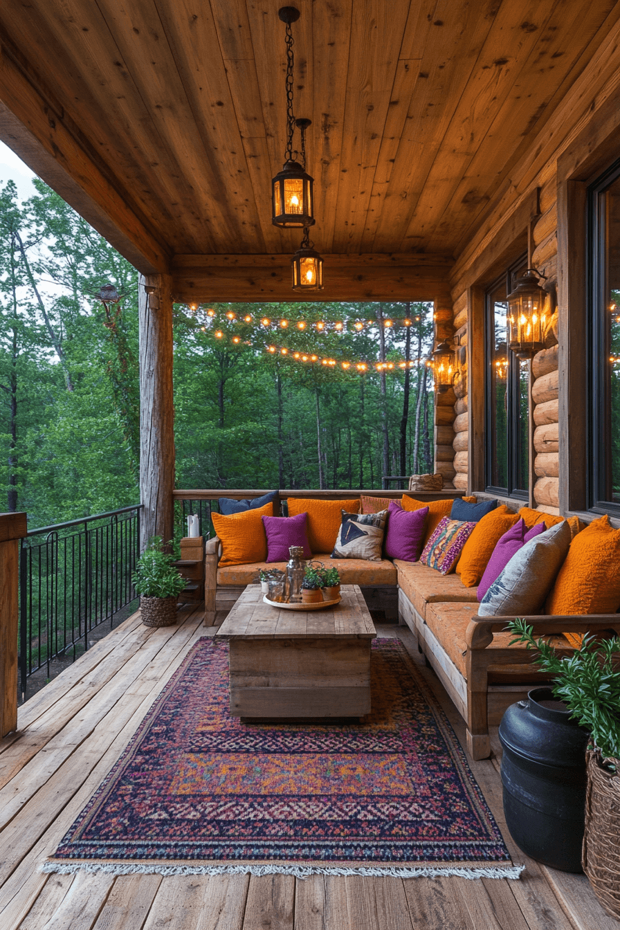 Extend your living space outdoors with little cabin decor that celebrates fresh air and cozy evenings. Weatherproof furniture, lanterns, and woven rugs add comfort to patios and porches. String lights and fire pits make gatherings magical. Plants and natural fabrics tie it all together beautifully.