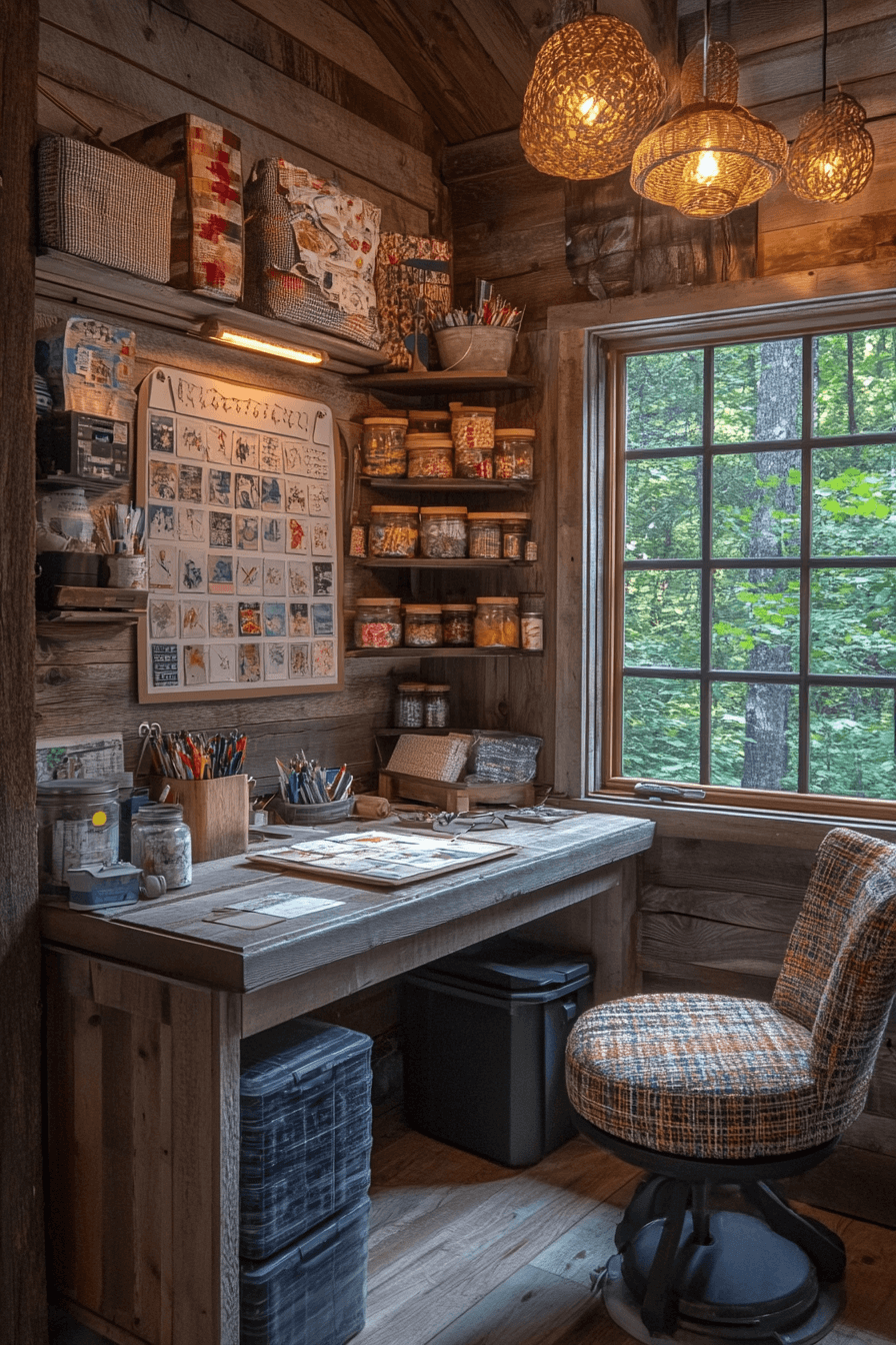 Embrace your creative side with little cabin decor that builds inspiring crafting corners. A sturdy worktable, bright lighting, and smart storage make projects easy and fun. Woven baskets and handmade accents add charm and personality. It’s a space made for imagination and joy.
