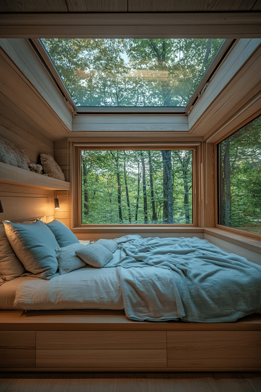 Let the stars be your ceiling with little cabin decor that embraces starlight sleepouts. Large windows or skylights invite endless sky views right from bed. Soft fabrics and glowing lanterns make nighttime magical. Every detail celebrates nature’s beauty after dark.