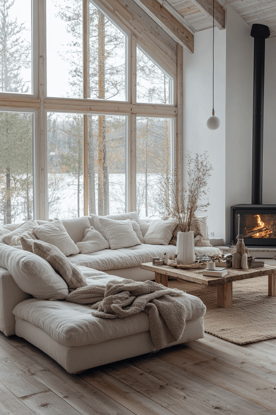 Scandinavian design brings effortless comfort to this little cabin living room, where simplicity feels luxurious. Pale wood floors, linen textiles, and an abundance of natural light create a bright and balanced vibe. Everything is intentional—from the minimal furniture to the cozy details. The room breathes calm energy with every glance.