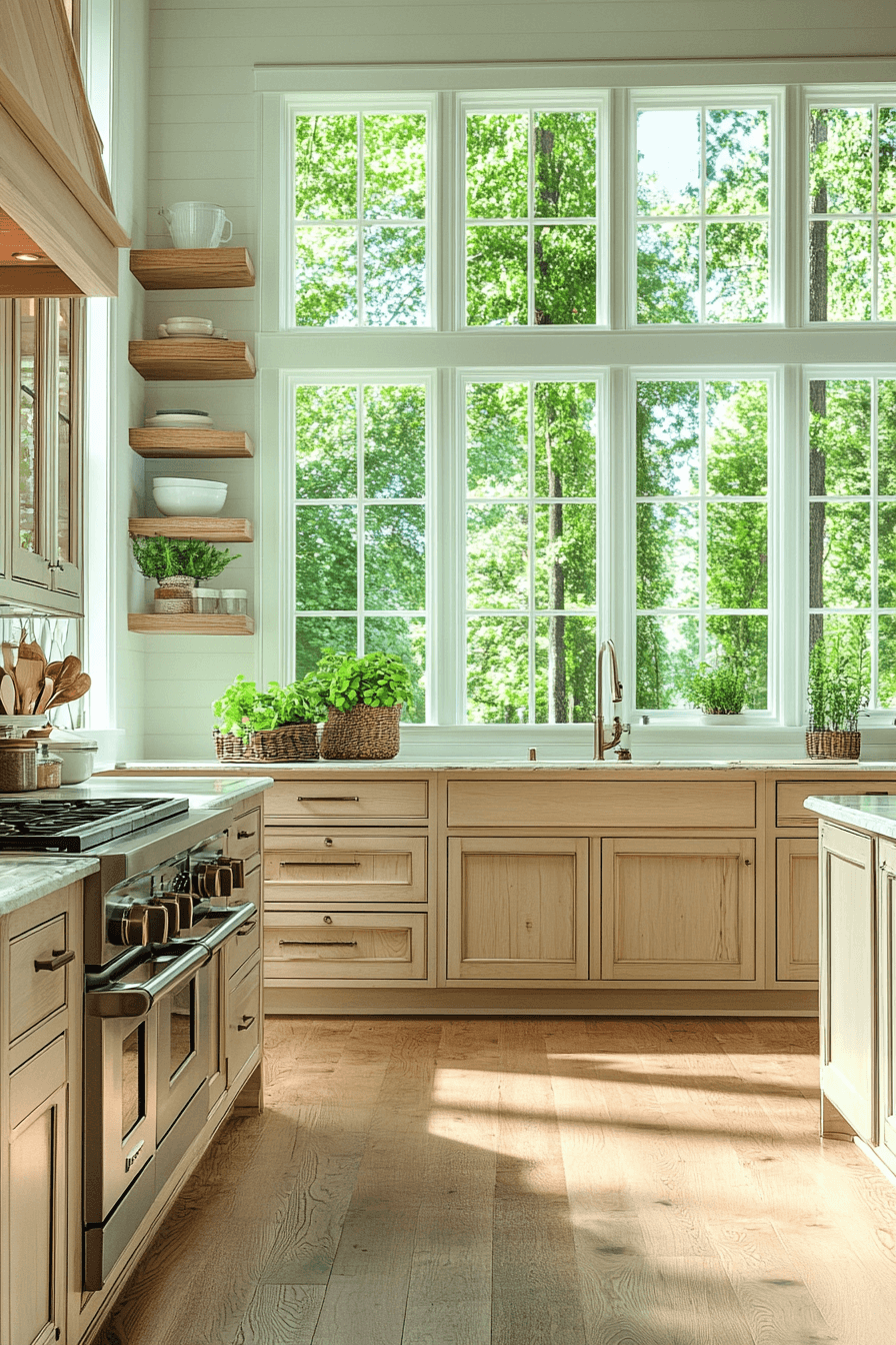A gentle sense of calm fills the room when maple kitchen cabinets introduce their soft, natural warmth. The pale maple tones blend beautifully with neutral palettes, creating a soothing and relaxing kitchen atmosphere. These cabinets offer just enough color to keep the space interesting while maintaining a peaceful visual balance. Maple’s subtle grain pattern adds quiet texture that enhances the cozy feeling of the room. Maple kitchen cabinets are perfect for kitchens meant for both cooking and gathering. Explore more serene maple kitchen cabinet ideas and get inspired.