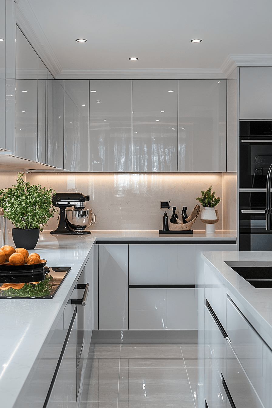 Sleek surfaces bring modern sophistication when glossy off white kitchen cabinets take center stage. Their reflective finish helps bounce light across the room, making the kitchen feel fresh and vibrant. Many contemporary homes choose off white kitchen cabinets with a polished sheen to complement stainless steel appliances. Clean lines and bright finishes create a streamlined, high-end appearance. The design feels modern, crisp, and effortlessly stylish. Discover glossy off white kitchen cabinets that add a luminous touch to modern kitchens!