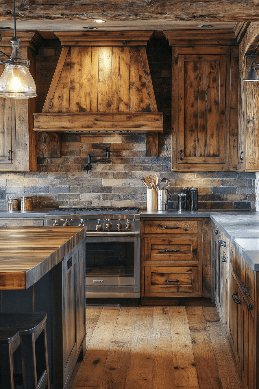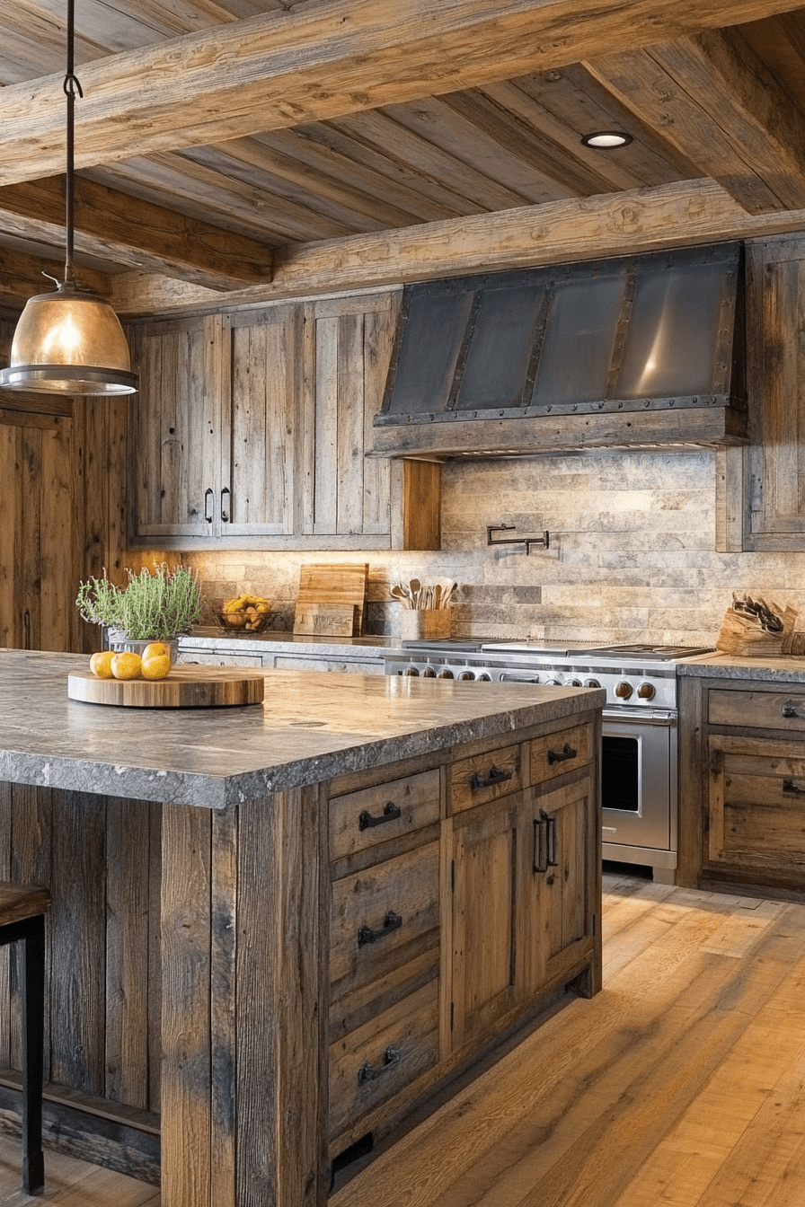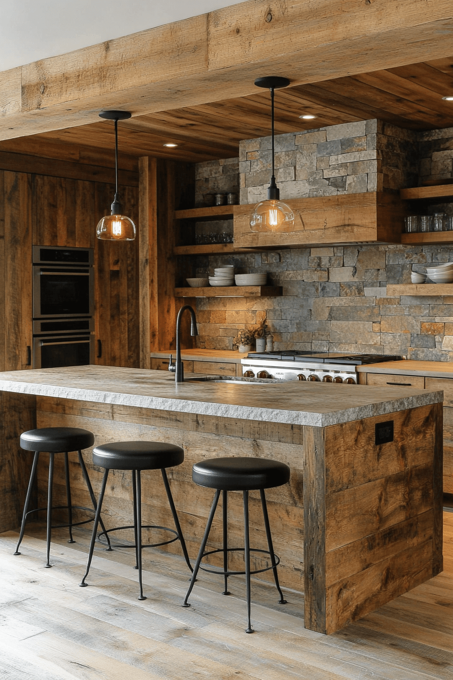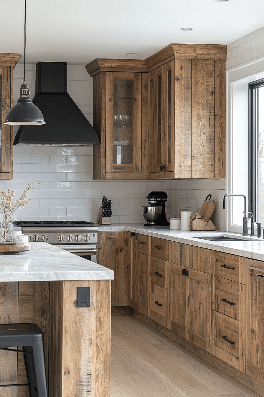 Reclaimed barnwood introduces history and personality into stunning rustic kitchen cabinets. Each plank carries natural imperfections like nail marks, knots, and weathered edges that tell a story. The rich, aged wood contrasts beautifully with sleek appliances and contemporary lighting. Choosing reclaimed materials also brings sustainability and authenticity into the heart of your home. These rustic kitchen cabinets anchor the kitchen with warmth, depth, and undeniable charm. Get inspired by the beauty of reclaimed wood and browse more ideas now.
