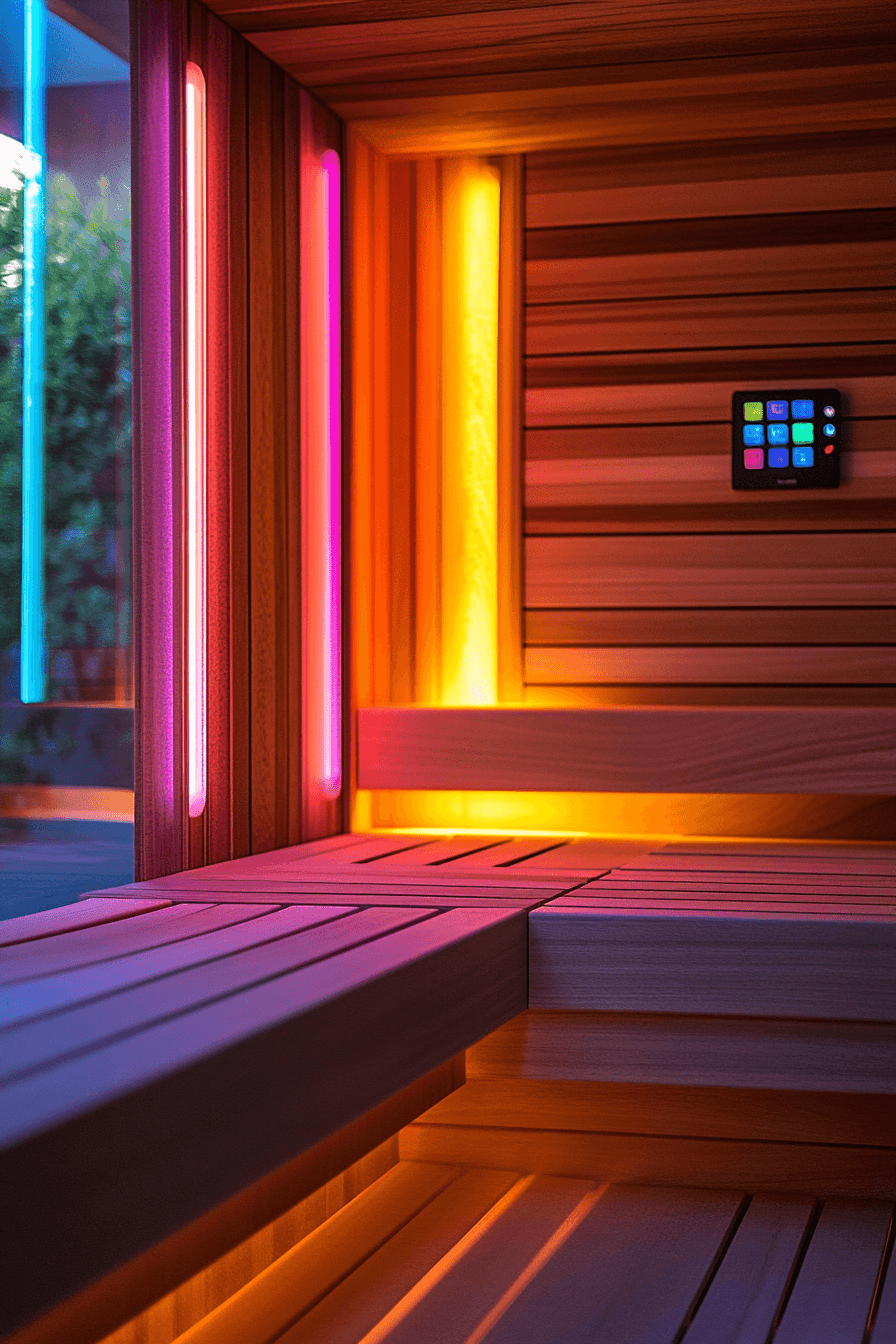 Color therapy transforms traditional heat sessions into immersive sauna ideas focused on mood and balance. LED lighting systems shift through calming hues to support relaxation and energy alignment. Adjustable settings allow you to tailor the experience to your needs. Reflective surfaces and soft tones amplify the effect of the lighting. These sauna ideas combine wellness technology with soothing design. Discover how chromotherapy sauna ideas can elevate your self-care routine.