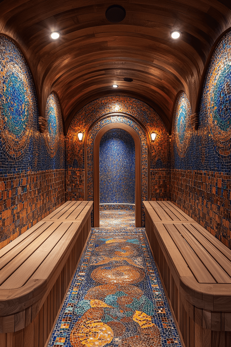 Artistic flair transforms traditional spaces into eye-catching sauna ideas filled with personality. Hand-laid mosaic tiles create stunning patterns and visual storytelling. The vibrant designs bring creativity and uniqueness into the sauna environment. Durable materials ensure the beauty lasts even in high heat. These sauna ideas turn relaxation into an artistic experience. Get inspired by mosaic sauna ideas that double as works of art.