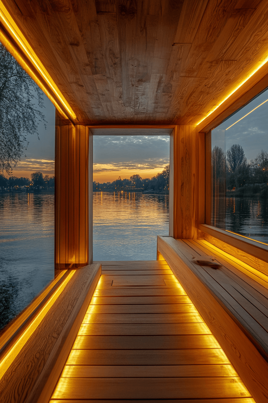 Floating structures introduce a one-of-a-kind experience with water-based sauna ideas. Positioned on lakes or calm waters, these saunas create a peaceful, immersive setting. Expansive windows allow you to enjoy soothing views while relaxing. The gentle movement of water enhances the calming atmosphere. These sauna ideas combine nature and design in a truly unforgettable way. Imagine your own floating retreat with these unique sauna ideas.
