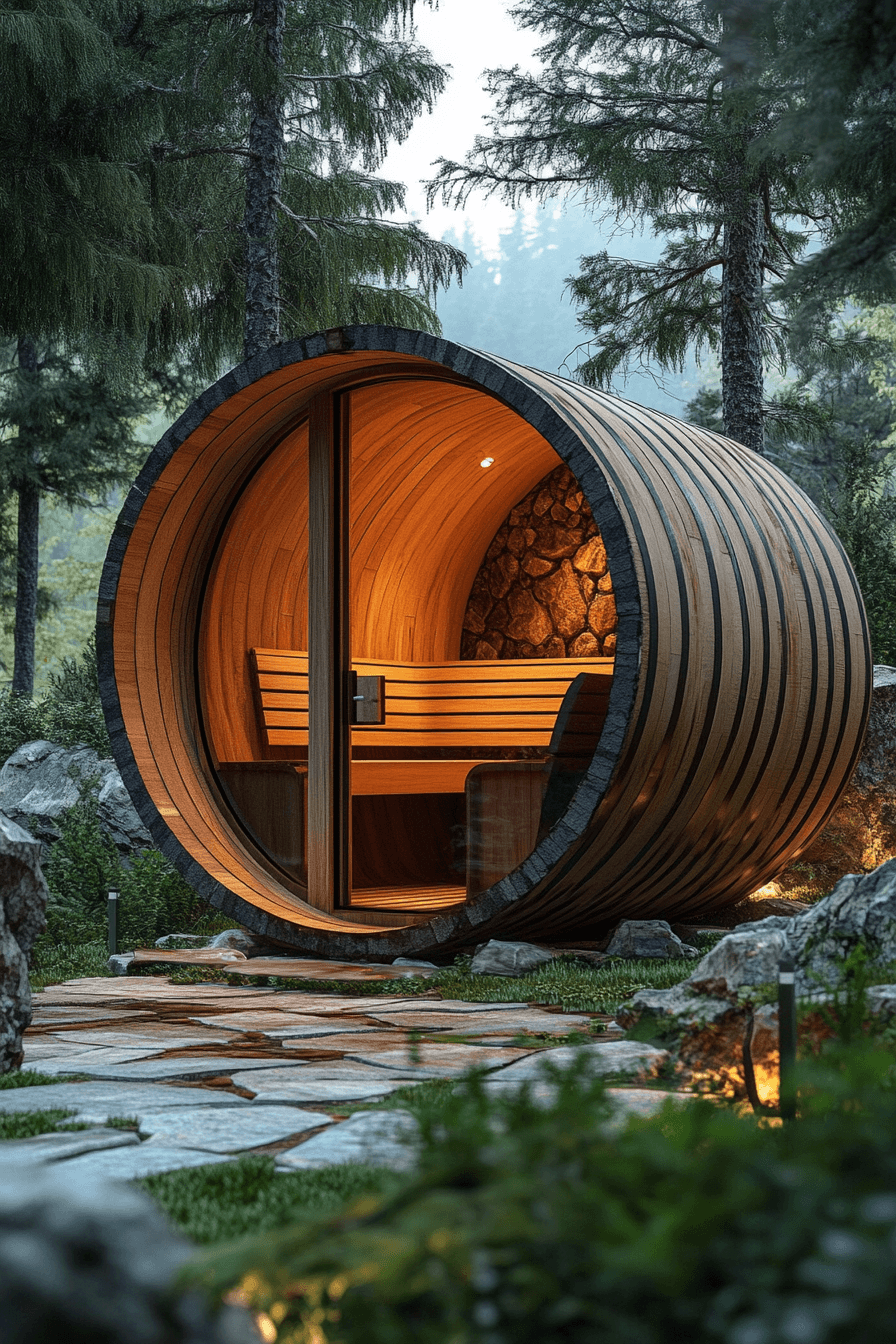 A curved outdoor structure brings charm and efficiency to standout sauna ideas designed for backyard retreats. The rounded barrel shape naturally improves heat circulation, creating a more even and enjoyable experience. Built from durable woods like cedar or redwood, it withstands the elements while adding rustic appeal. Its compact footprint makes it perfect for patios, gardens, or smaller outdoor spaces. These sauna ideas combine functionality with eye-catching design in a way that feels both practical and beautiful. Discover how a barrel-style sauna can transform your outdoor wellness space.