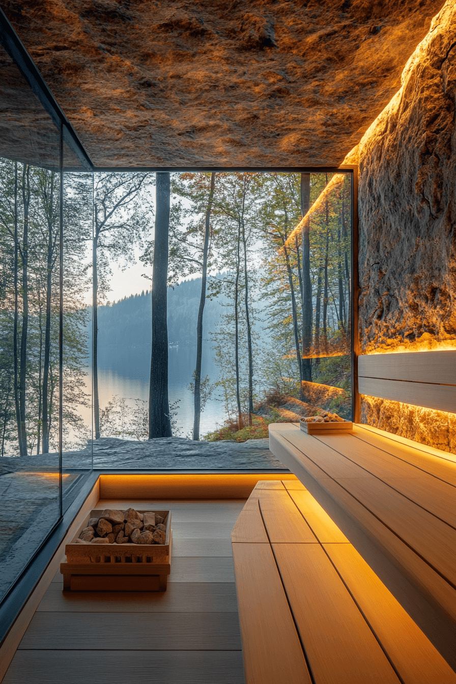 Expansive windows open up stunning sauna ideas that connect relaxation with breathtaking views. Large glass panels bring natural light into the space while framing scenic landscapes. Whether overlooking forests, mountains, or gardens, the view becomes part of the experience. The transparency creates a feeling of openness while maintaining comfort and warmth. These sauna ideas allow you to unwind while staying connected to nature. See how panoramic sauna ideas can transform your surroundings.