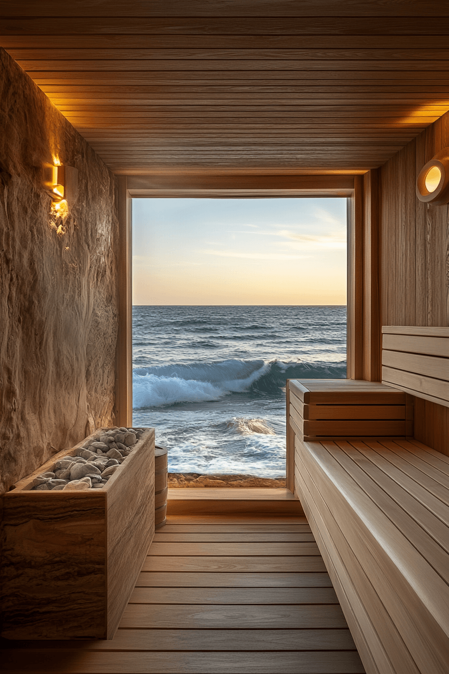 Coastal settings inspire refreshing sauna ideas that blend ocean views with relaxation. Large openings or windows allow you to enjoy the calming sight of the sea while inside. Durable materials are chosen to handle salty air while maintaining style and comfort. Soft, ocean-inspired tones enhance the peaceful atmosphere of the space. These sauna ideas create a seamless connection between indoor comfort and outdoor beauty. Imagine your perfect coastal escape with oceanfront sauna ideas.