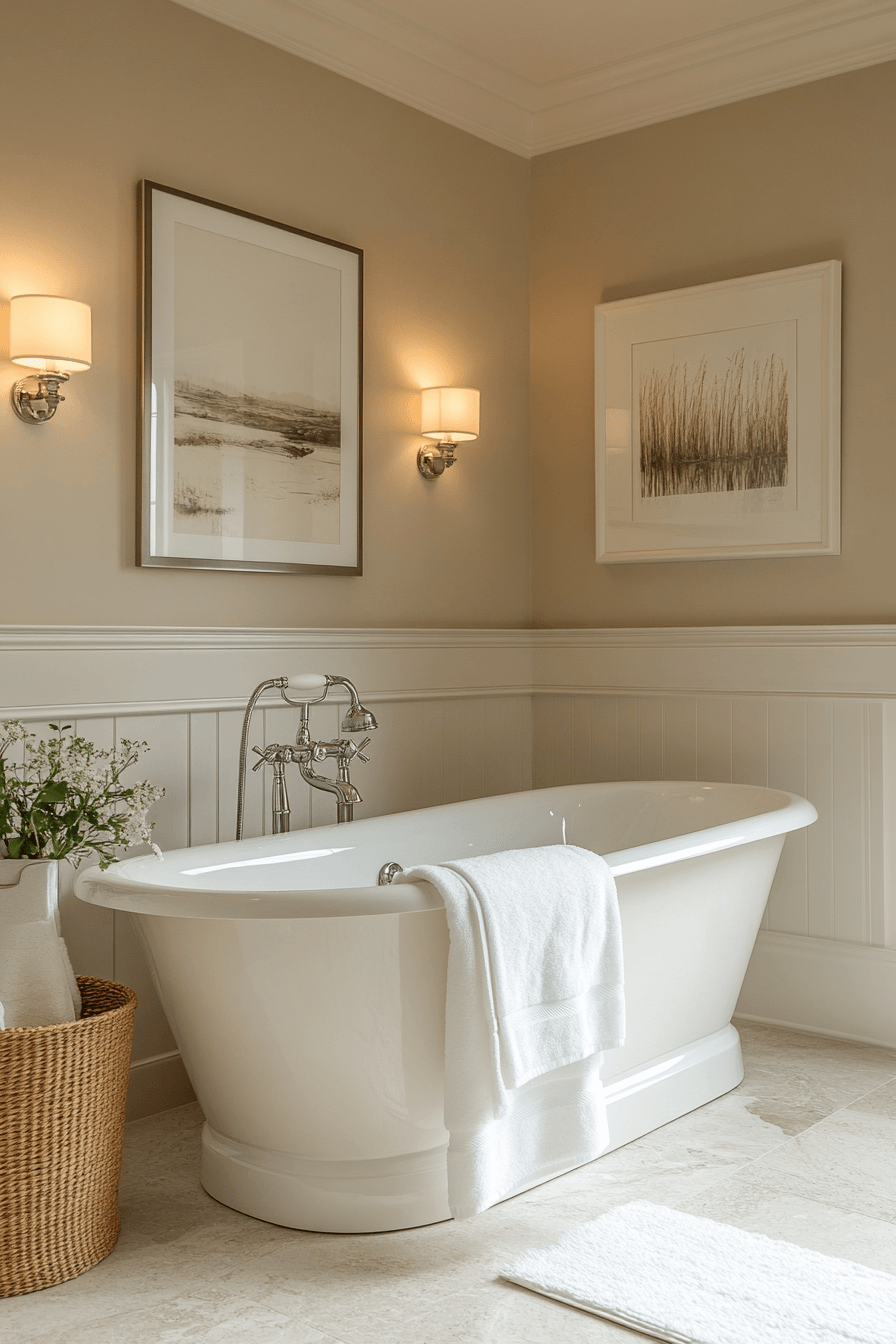 If you love mixing styles, small bathroom ideas with a transitional design can give you the best of both worlds. Think classic elements like a traditional vanity paired with sleek, modern hardware. Subway tiles can feel fresh again when laid in updated patterns. Neutral tones help tie everything together so the space feels balanced and cohesive. It’s a great option if you want something timeless without feeling outdated. See how small bathroom ideas can blend classic and modern styles effortlessly!