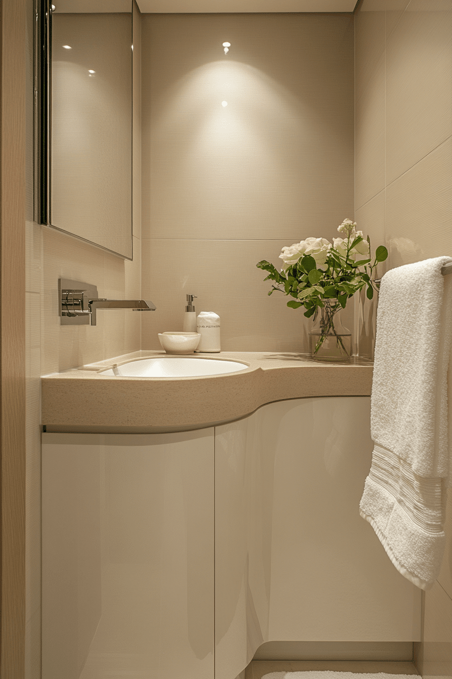 When every inch counts, small bathroom ideas that use corner layouts can make a huge difference. Corner sinks, toilets, and showers help free up the rest of the space. This makes the room feel less cramped and more functional. Adding corner shelves or wall-mounted storage keeps everything within reach. It’s especially helpful for awkward layouts or very tight spaces. Explore small bathroom ideas that maximize corners for better flow!
