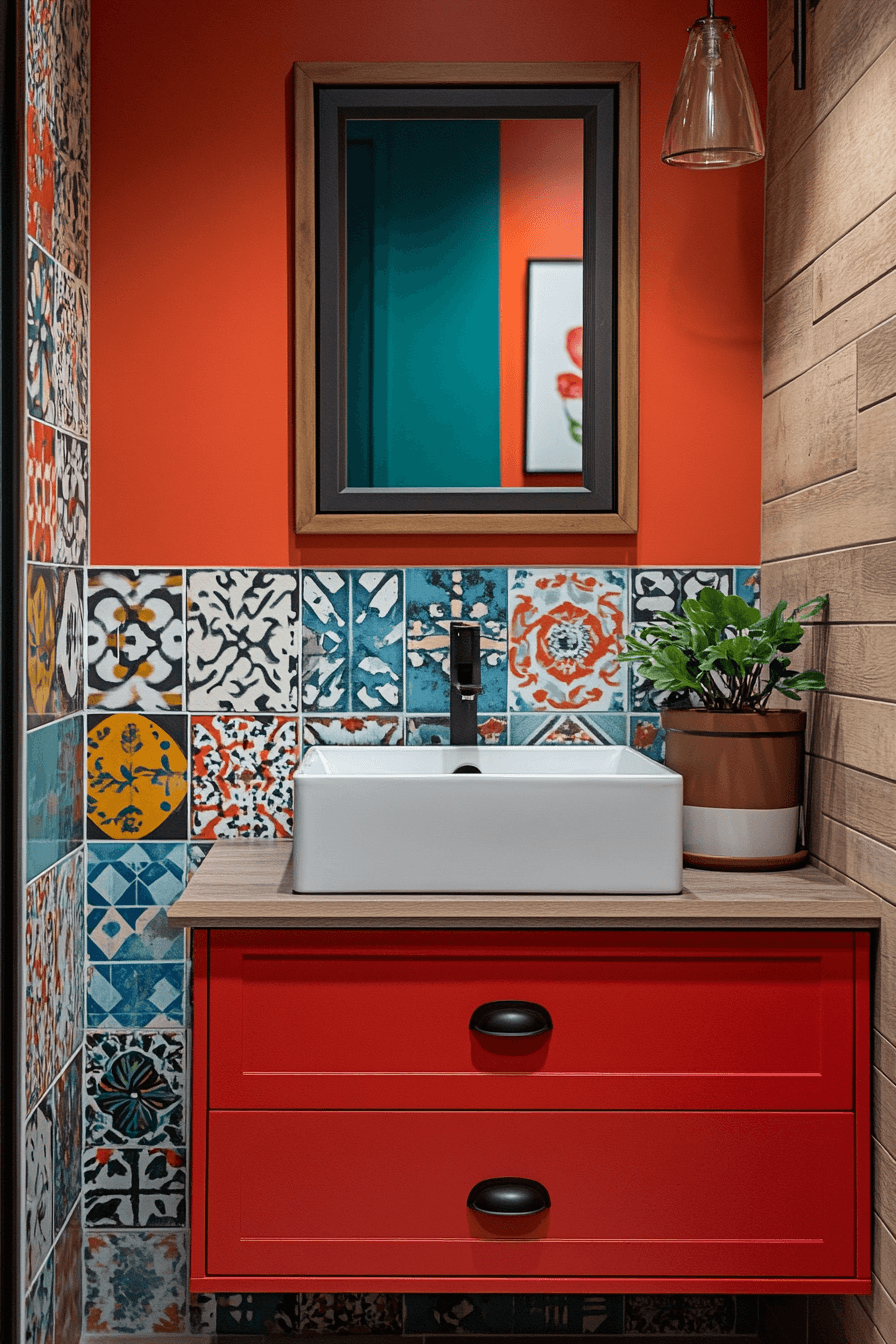 Adding a pop of color can instantly lift the mood, and small bathroom ideas with bold accents do just that. A bright backsplash, colorful towels, or even a fun shower curtain can bring personality into the space. Using color in small doses keeps things lively without feeling overwhelming. It’s a great way to express your style while keeping the room balanced. Even a few vibrant touches can make a big impact. See more small bathroom ideas that play with bold color!
