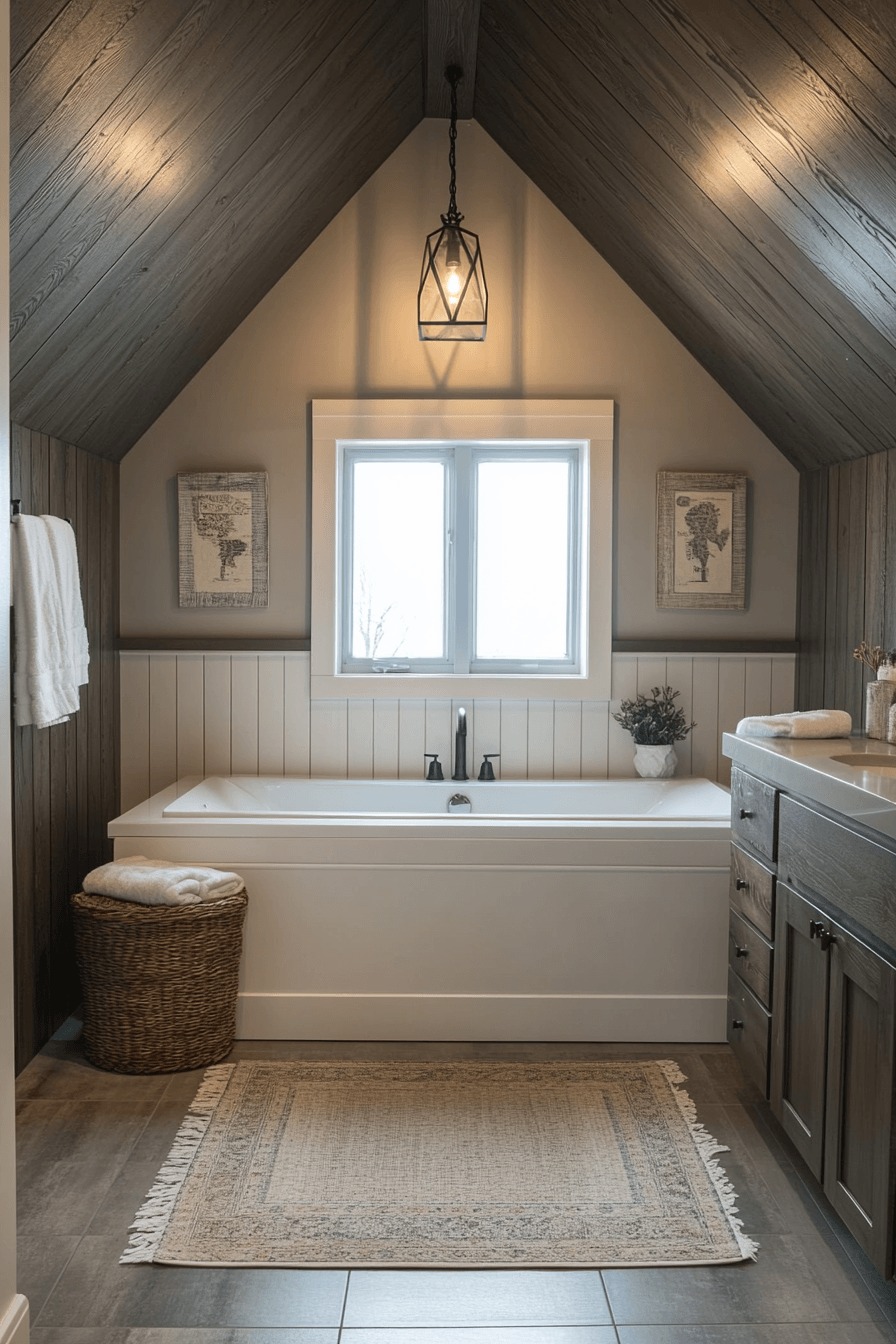 If your bathroom has height, small bathroom ideas that focus on vertical space can make it feel much bigger. Tall mirrors and vertical tiles draw the eye upward, creating a more open feel. Adding a skylight or higher windows brings in more natural light. Hanging accents or pendant lights can highlight the height without cluttering the room. It’s a simple trick that adds a sense of luxury without needing more square footage. Discover small bathroom ideas that make the most of high ceilings!