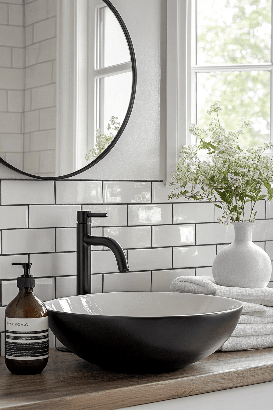 A black and white palette never goes out of style, and small bathroom ideas built around this combo feel clean and timeless. The contrast between dark and light creates a sharp, modern look. Keeping the design minimal helps the space feel more open and uncluttered. Adding texture through tiles or finishes keeps things interesting without overcomplicating it. It’s a simple yet striking way to design a small space. Browse small bathroom ideas that highlight black and white style!