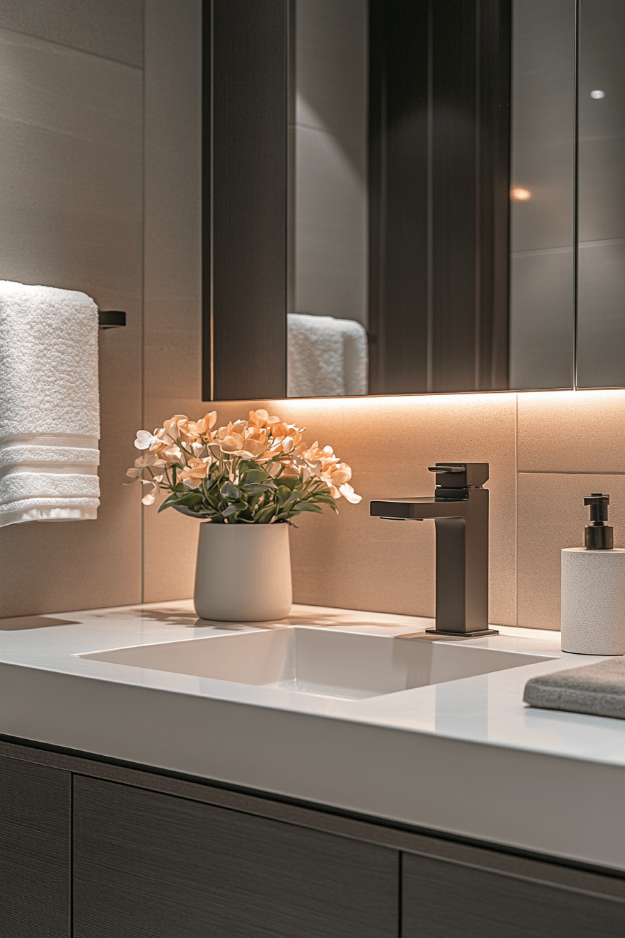 Updating an older space can be exciting, especially with small bathroom ideas that lean into sleek, modern design. Flat-front cabinets, streamlined faucets, and integrated sinks give the room a fresh look. Bold contrasts like black and white can add personality without making the space feel busy. Keeping decor minimal helps maintain that clean, updated feel. Frameless mirrors and simple finishes tie everything together nicely. Dive into more small bathroom ideas for a modern makeover!