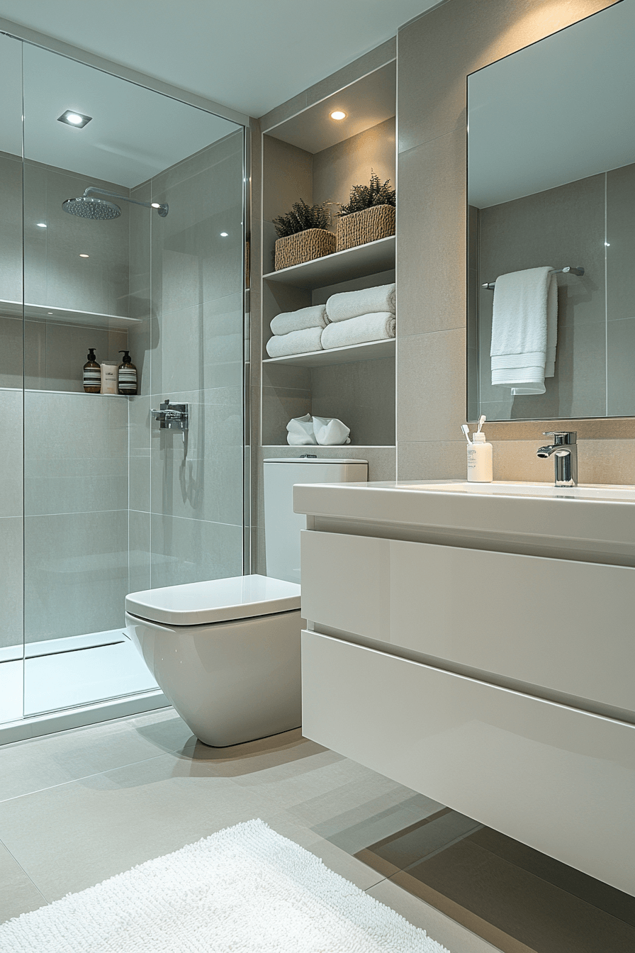 For a sleek and efficient setup, small bathroom ideas with an ultra-modern layout really make a difference. These designs focus on smart use of space while keeping everything looking streamlined and stylish. Wall-mounted sinks and toilets open up the floor and make the room feel less crowded. Clever storage keeps essentials organized without adding bulk. Simple color palettes and modern materials tie the whole look together beautifully. Explore more small bathroom ideas that embrace ultra-modern design!