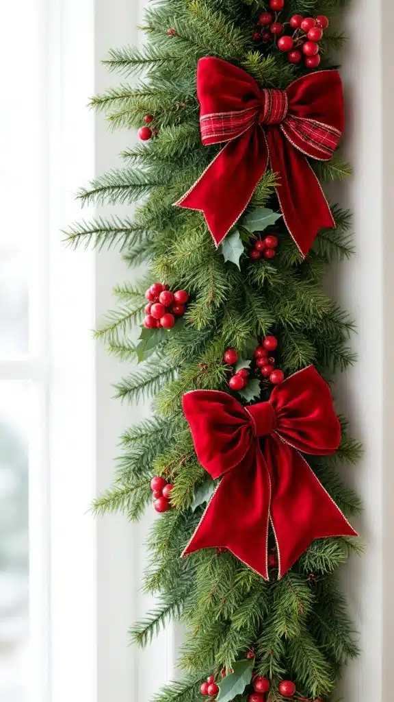 The classic red and green palette is a timeless choice that brings holiday tradition to life. Rich green shades from lush evergreen garlands contrast beautifully with vibrant red velvet bows and plaid ribbons, creating a nostalgic and heartwarming aesthetic. Accents of holly berries add a festive, natural touch, while materials like pine branches or faux greenery offer both authenticity and practicality.